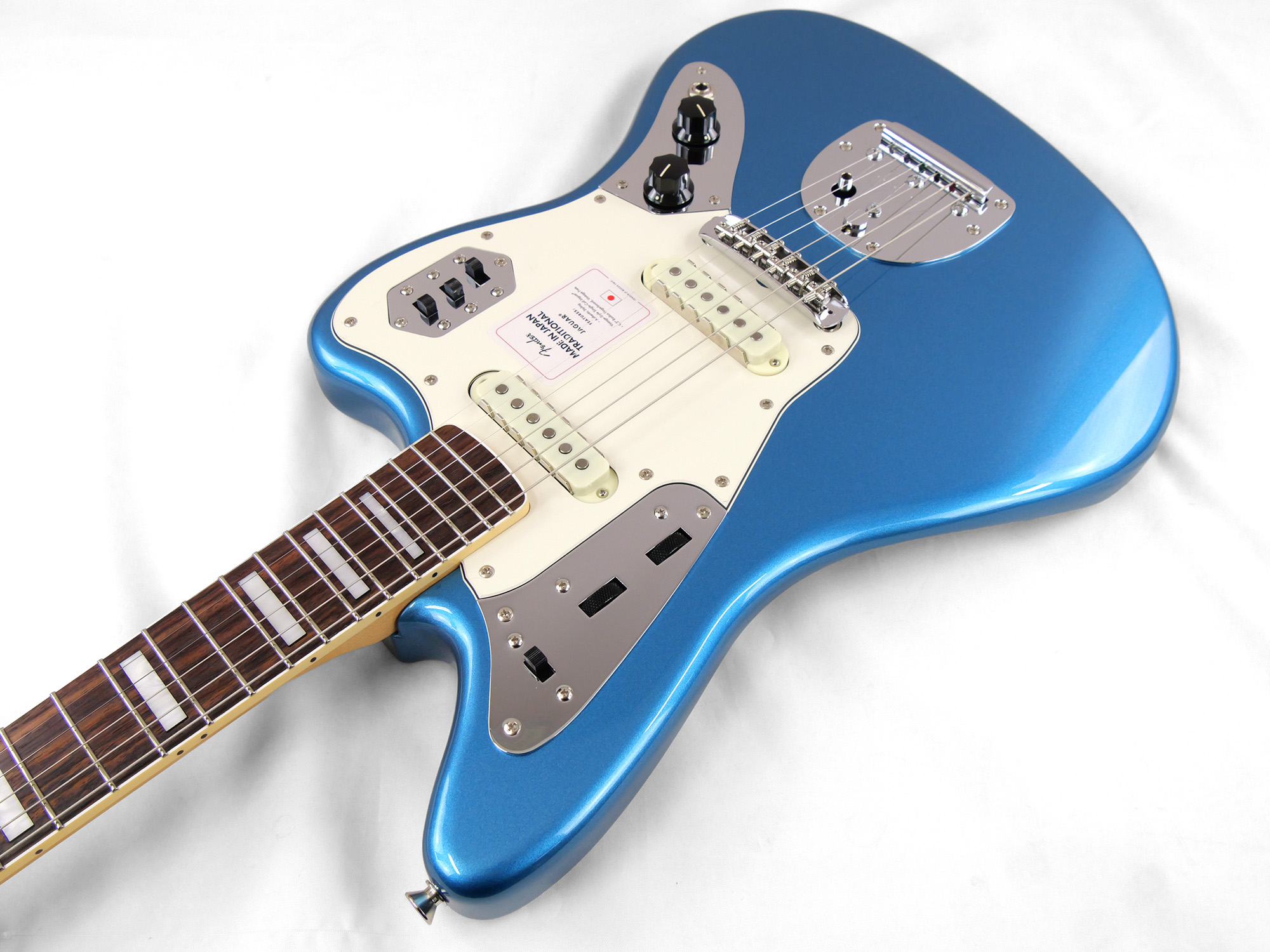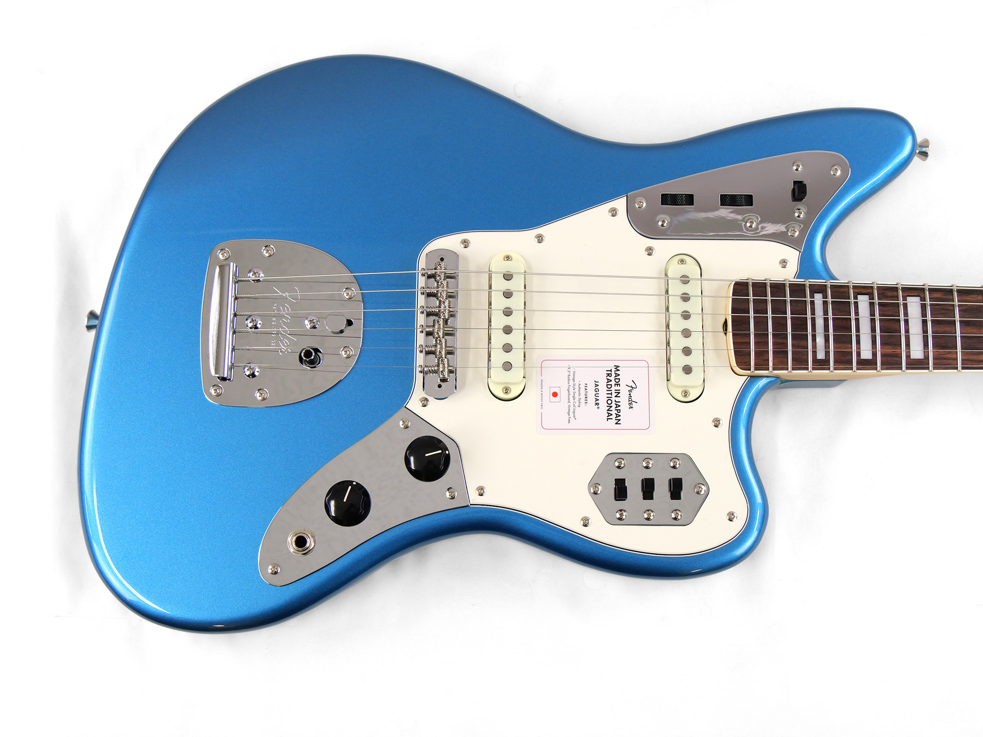 Made in Japan Traditional Late '60s Jaguar®はグロスフィニッシュのバスウッドボディに、ヴィンテージスタイルの22フレットを採用し、9.5インチラジアスの”U” シェイプメイプルネックがTraditionalシリーズならではのクラシカルな演奏製を提供します。フローティングトレモロテイルピース付きの6サドル式ヴィンテージスタイルブリッジ、そしてTraditionalシリーズのために選定されたオリジナルピックアップはリアルで音楽的なヴィンテージトーンを奏でます。 本製品は、60年代の後期から採用されていた、ネックにバインディングが施されブロックのポジションインレイを採用した製品のリイシューです。 堅実なギタークラフトマンシップと、プレイヤーのニーズに柔軟に対応する答えが、本シリーズに反映されています。