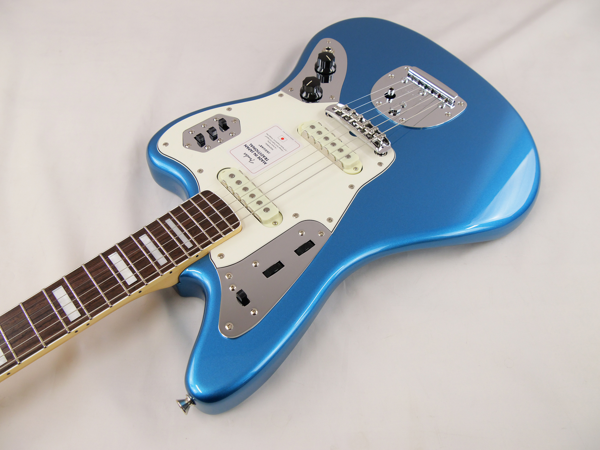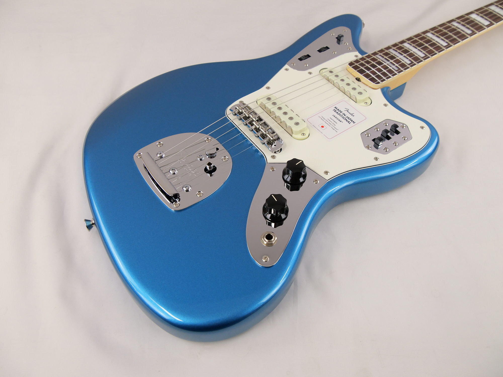 Made in Japan Traditional Late '60s Jaguar®はグロスフィニッシュのバスウッドボディに、ヴィンテージスタイルの22フレットを採用し、9.5インチラジアスの”U” シェイプメイプルネックがTraditionalシリーズならではのクラシカルな演奏製を提供します。フローティングトレモロテイルピース付きの6サドル式ヴィンテージスタイルブリッジ、そしてTraditionalシリーズのために選定されたオリジナルピックアップはリアルで音楽的なヴィンテージトーンを奏でます。 本製品は、60年代の後期から採用されていた、ネックにバインディングが施されブロックのポジションインレイを採用した製品のリイシューです。 堅実なギタークラフトマンシップと、プレイヤーのニーズに柔軟に対応する答えが、本シリーズに反映されています。