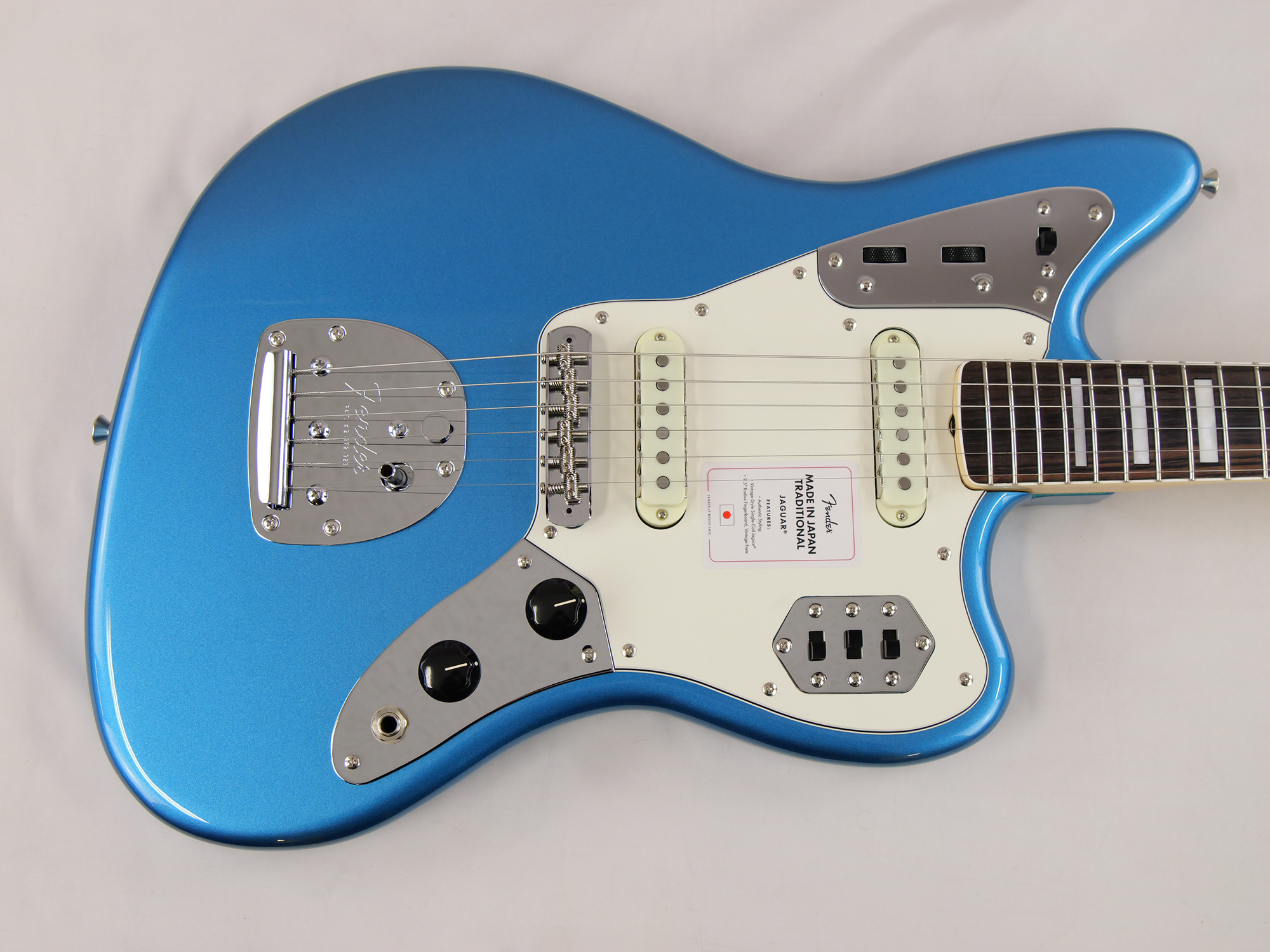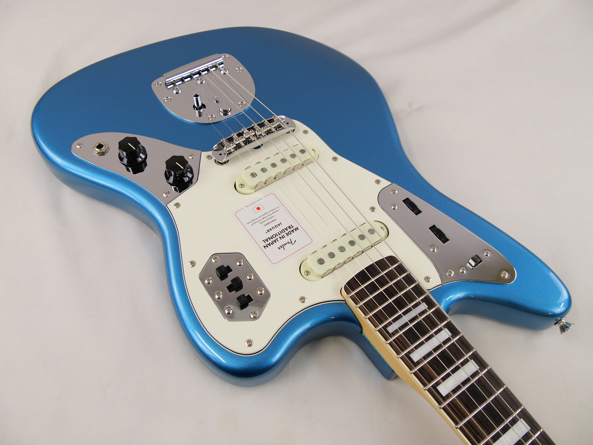 Made in Japan Traditional Late '60s Jaguar®はグロスフィニッシュのバスウッドボディに、ヴィンテージスタイルの22フレットを採用し、9.5インチラジアスの”U” シェイプメイプルネックがTraditionalシリーズならではのクラシカルな演奏製を提供します。フローティングトレモロテイルピース付きの6サドル式ヴィンテージスタイルブリッジ、そしてTraditionalシリーズのために選定されたオリジナルピックアップはリアルで音楽的なヴィンテージトーンを奏でます。 本製品は、60年代の後期から採用されていた、ネックにバインディングが施されブロックのポジションインレイを採用した製品のリイシューです。 堅実なギタークラフトマンシップと、プレイヤーのニーズに柔軟に対応する答えが、本シリーズに反映されています。