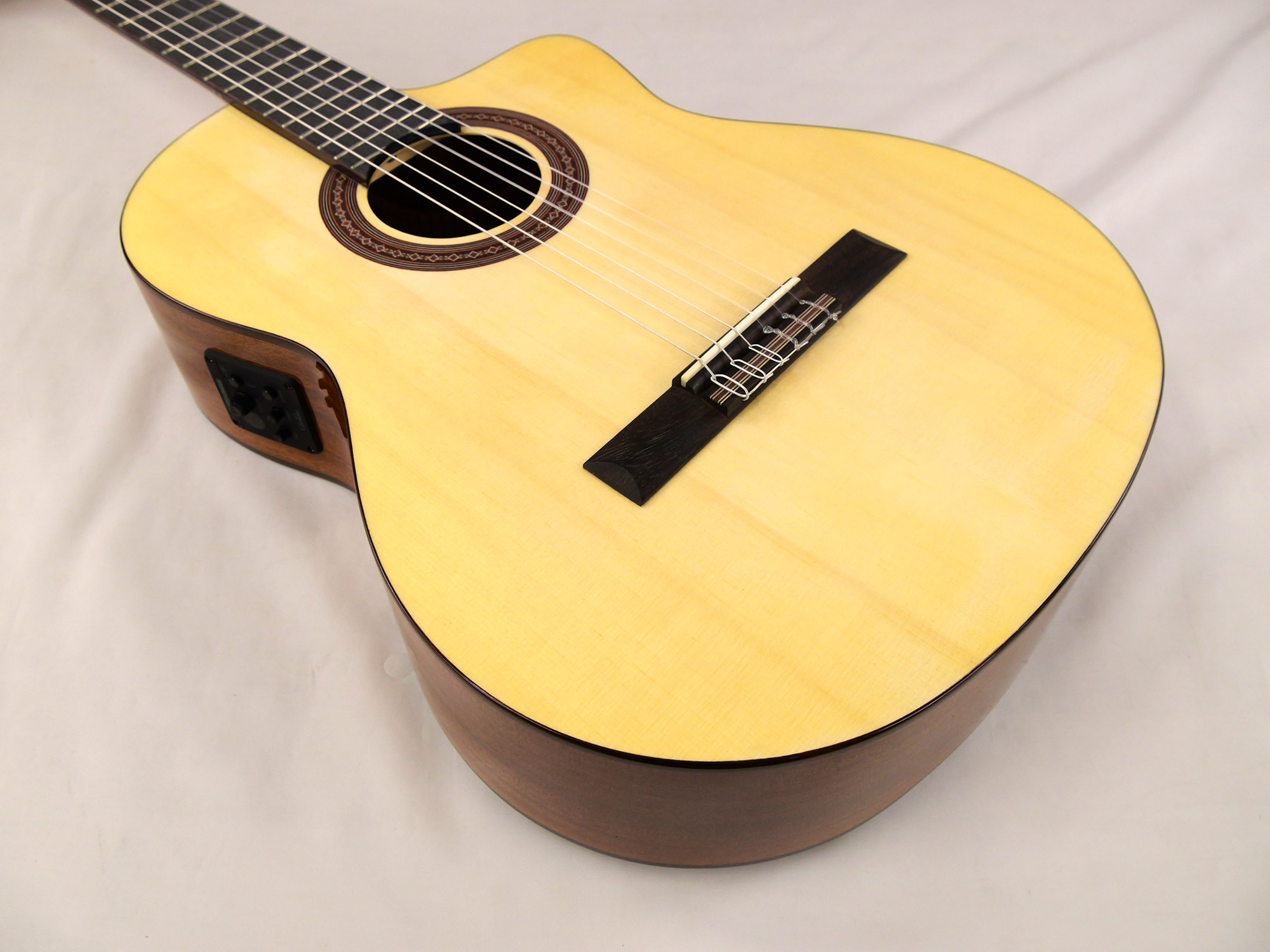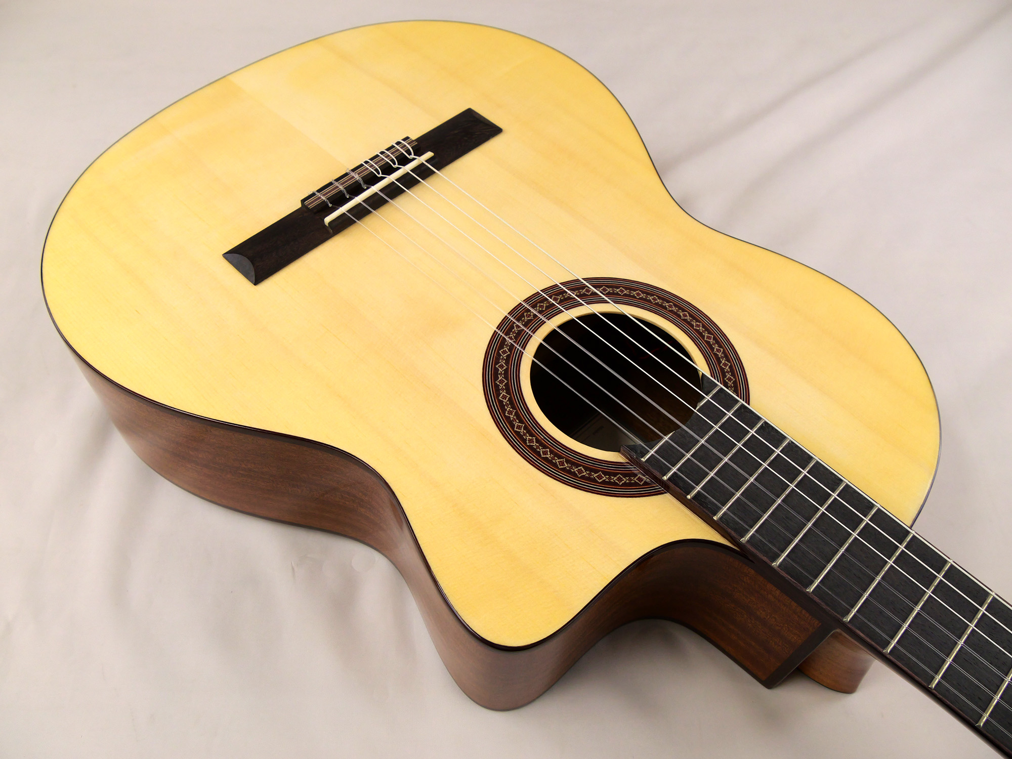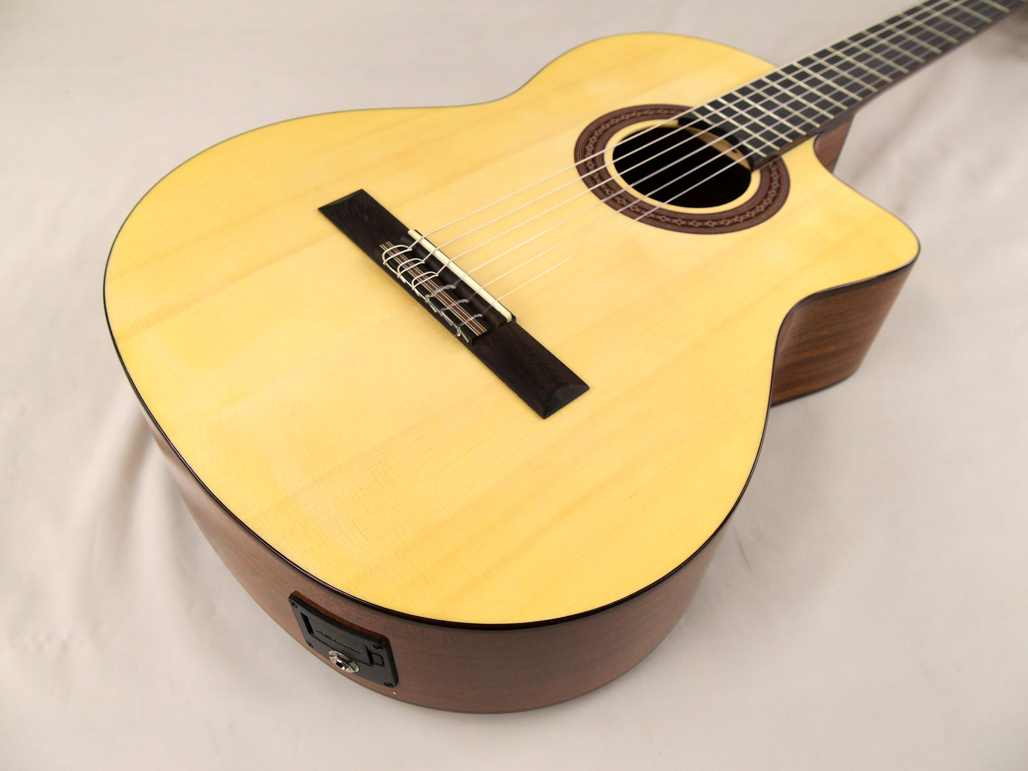 Córdobaのトップセラー、C5-CEをベースにしたC5-CE Spruceは、ファン待望の1本。高音域へのアクセスが容易なソフト・カッタウェイを採用し、Fishman Presys IIプリアンプがステージやスタジオでのシグナルを増幅します。単板のイングルマン・スプルース・トップとマホガニー・バック&サイドを採用した軽量モデルで、クリアでパワフルな音色と美しいサステインを生み出します。伝統的なスパニッシュ・スタイルでハンドメイドされたC5は、彫刻が施されたヘッドストック、手作業ではめ込まれたウッド・ロゼッタ、インディアン・ローズウッド・バインディング、サバレス弦、光沢のあるPUフィニッシュにより、他のエントリー・レベルのギターとは一線を画す仕上がりになっています。軽量で調整可能なトラスロッドはネックに内蔵され、安定性を高めています。イングルマン・スプルース単板トップのナチュラル・フィニッシュ。