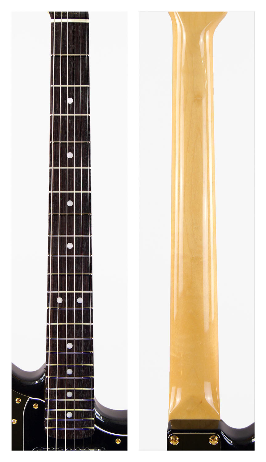 Made in Japan Traditional 2025 Collection, 60s Jaguar®は、Made in Japan Traditional 60s Jaguar®をベースに2025年限定のルックスを纏った特別なモデルです。 "Black Pearl"と"White Pearl"は、ボディとヘッドストックにこれらの製品だけの特殊なパール塗装を施しており、ゴールドに統一されたハードウェアと相まって、より一層、優雅で上品な高級感を得ることができます。 "Competition Black / 3-Color Sunburst"と"Competition 3-Color Sunburst / Aged Natural"は、従来の有彩色なコンペティションラインをあしらった製品ではなく、フェンダーの代表的なカラーである3-Color Sunburstをボディデザインに溶け込ませることで、3本ラインの中から、違った角度のフェンダーらしさを感じることができる製品です。