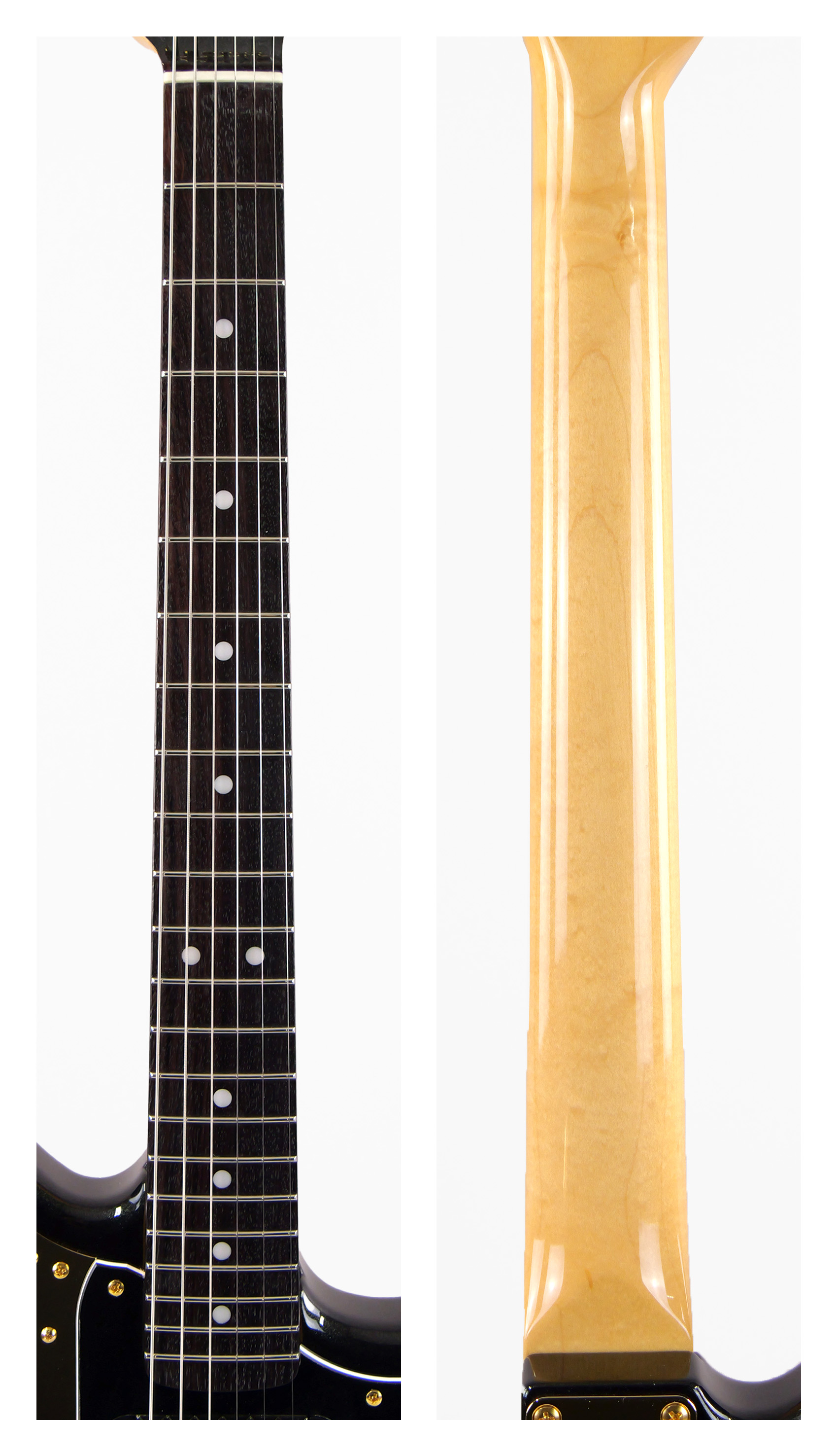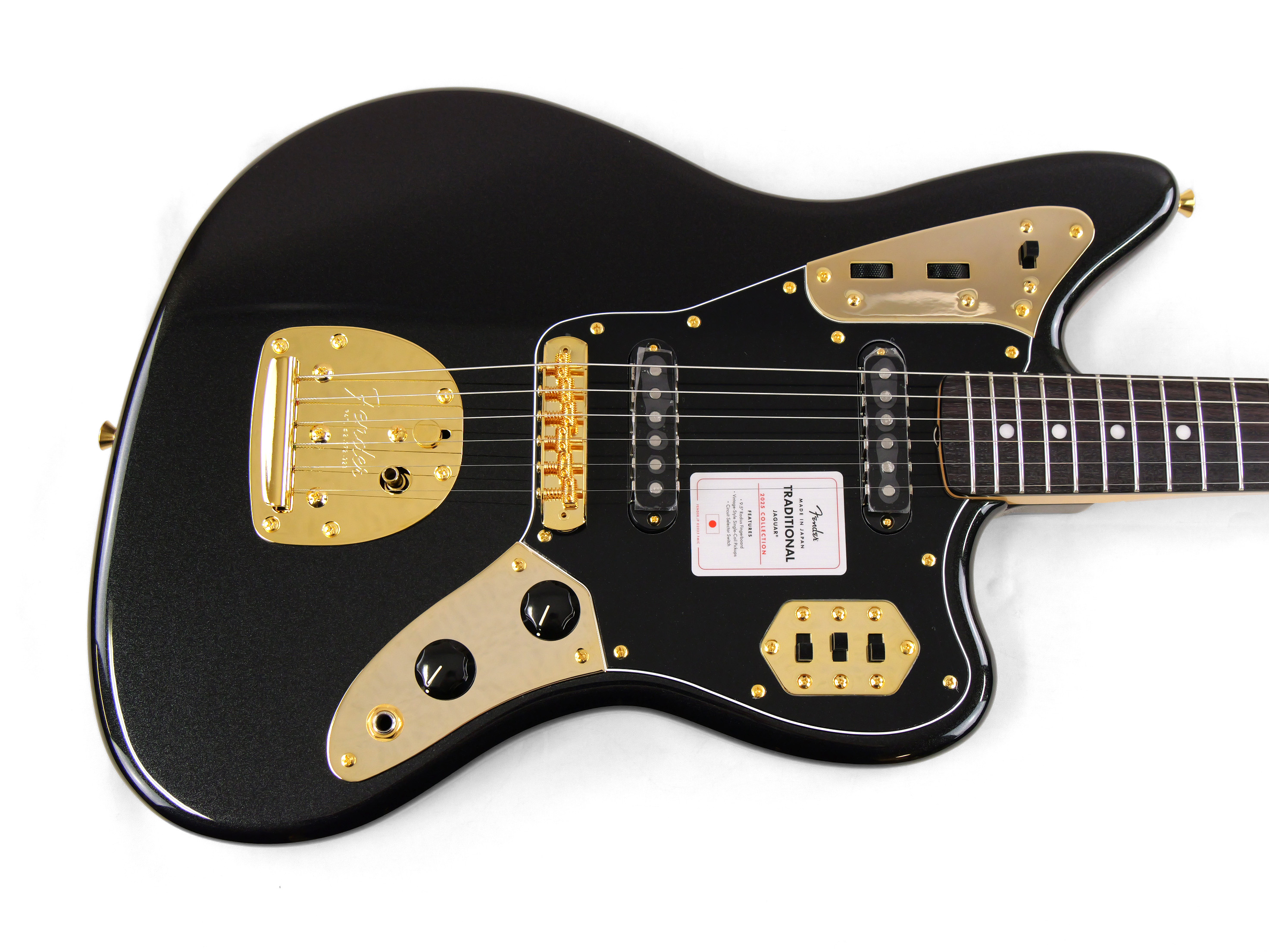 Made in Japan Traditional 2025 Collection, 60s Jaguar®は、Made in Japan Traditional 60s Jaguar®をベースに2025年限定のルックスを纏った特別なモデルです。 "Black Pearl"と"White Pearl"は、ボディとヘッドストックにこれらの製品だけの特殊なパール塗装を施しており、ゴールドに統一されたハードウェアと相まって、より一層、優雅で上品な高級感を得ることができます。 "Competition Black / 3-Color Sunburst"と"Competition 3-Color Sunburst / Aged Natural"は、従来の有彩色なコンペティションラインをあしらった製品ではなく、フェンダーの代表的なカラーである3-Color Sunburstをボディデザインに溶け込ませることで、3本ラインの中から、違った角度のフェンダーらしさを感じることができる製品です。