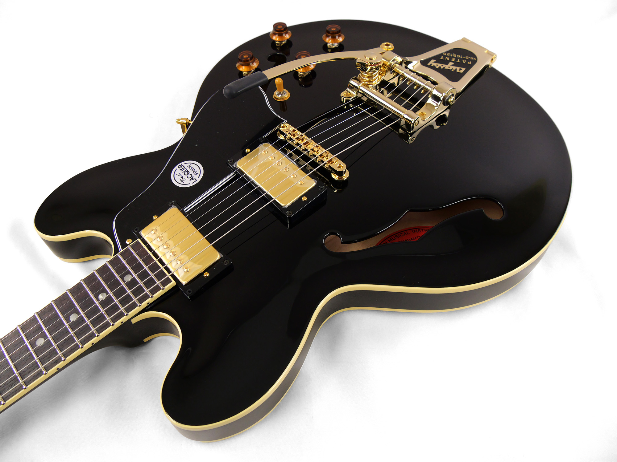 ラッカー塗装、メイプルトップ、メイプルボディ、1ピースマホガニーネック、採用したES-335 スタイル。