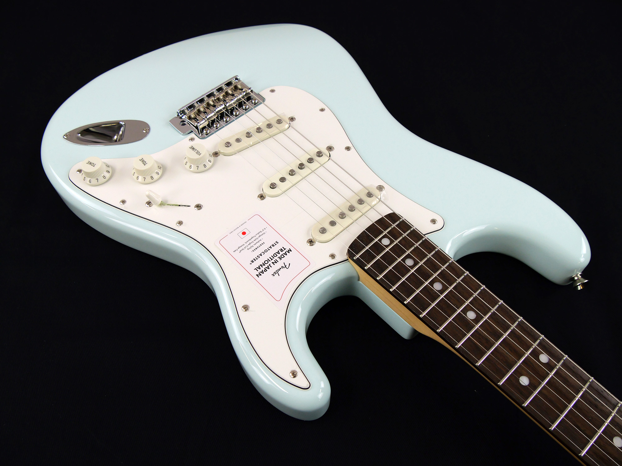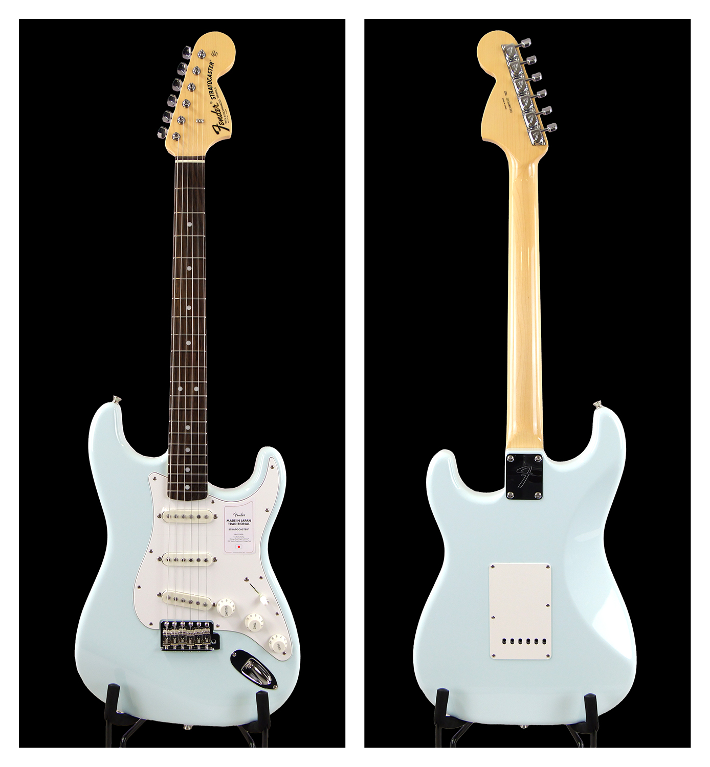 Made in Japan Traditional Late 60s Stratocaster®はグロスフィニッシュのバスウッドボディを採用。21本のヴィンテージスタイルフレットを装備した9.5インチラジアスの”U”シェイプメイプルネックがTraditionalシリーズならではのクラシカルな演奏製を提供します。6サドル式ヴィンテージスタイルSynchronized Tremoloブリッジ、そしてTraditionalシリーズのために選定されたオリジナルピ ックアップはリアルで音楽的なヴィンテージトーンを奏でます。細めに設計されたナット幅は日本のプレイヤーにも弾きやすい仕様となっています。堅実なギタークラフトマンシップと、プレイヤーのニーズに柔軟に対応する答えが、本シリーズに反映されています。