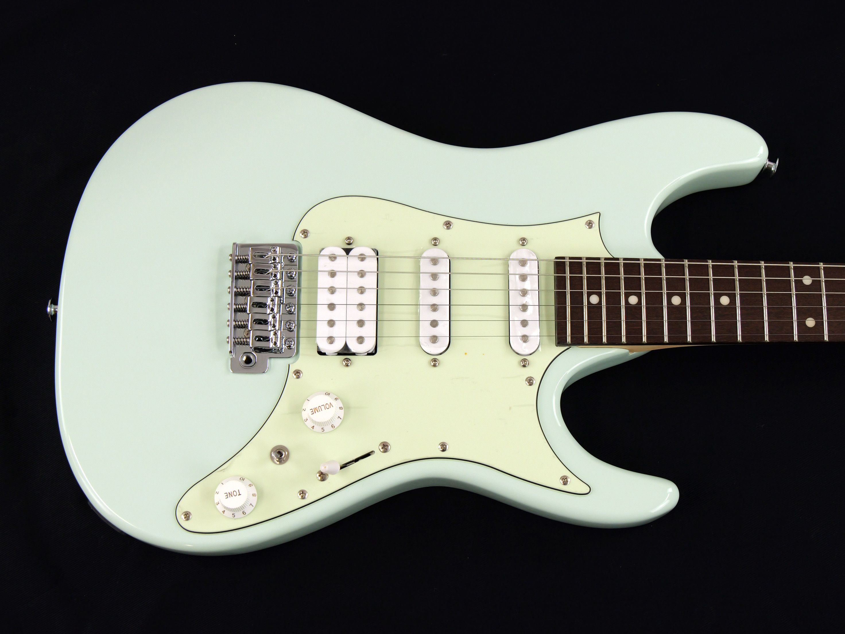 ◇“AZES”のために開発されたシングルコイルピックアップ” Essentials”とハムバッカーピックアップ”Accord”のS-S-H配列。フラットな音響特性で、どの音域もバランスよく聴こえるように設計。
