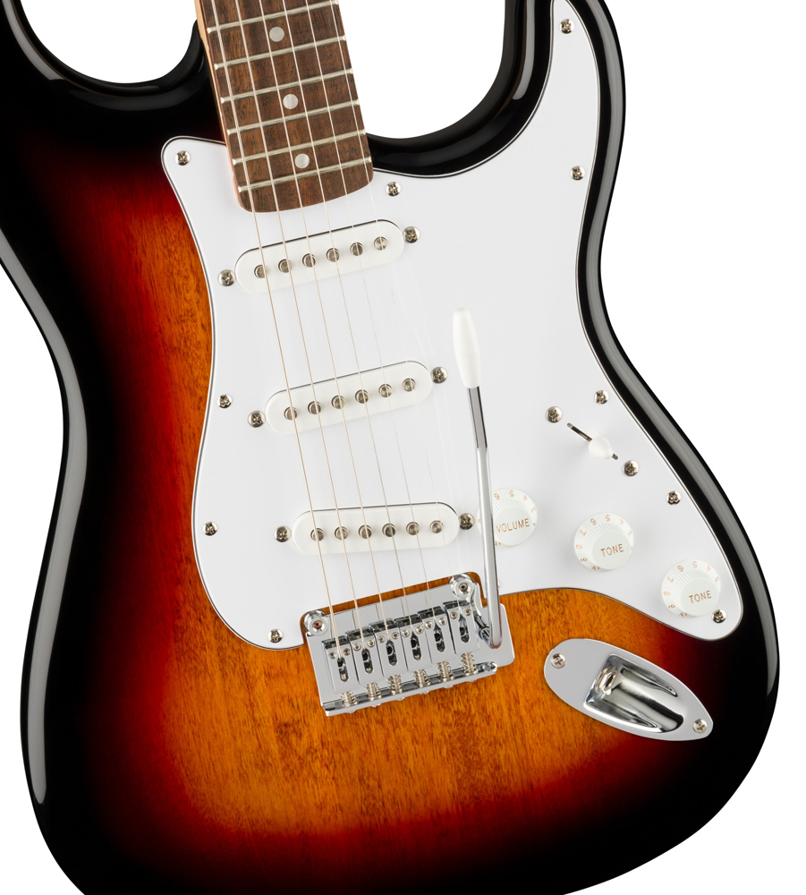ジャンルを超えたサウンドバリエーションを実現する5ウェイスイッチングのSquier Single-Coil Stratocasterピックアップを3基搭載し、あらゆるステージであらゆるプレイヤーに寄り添うことができるモデルです。