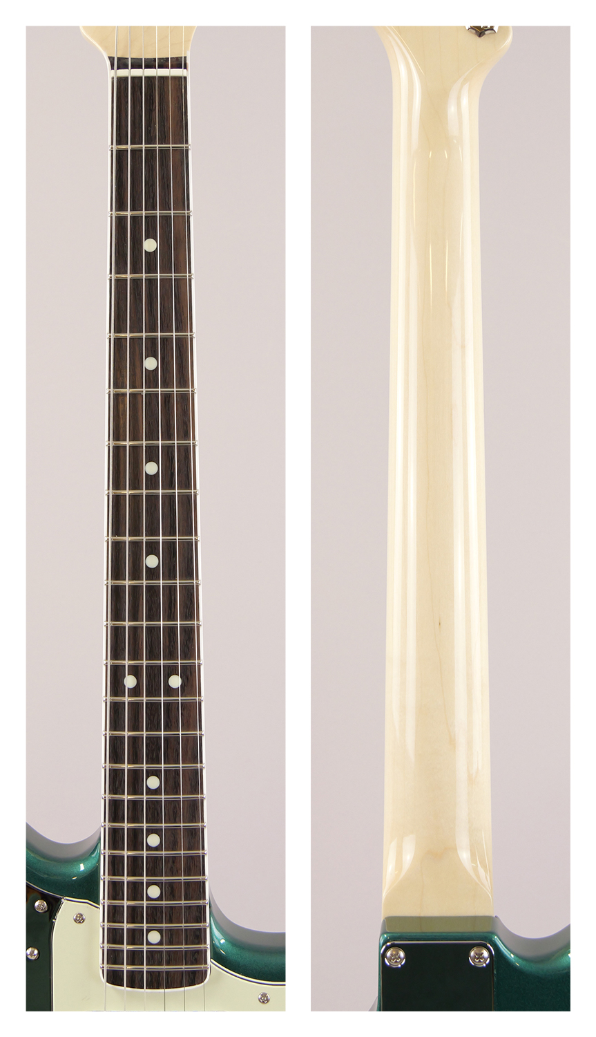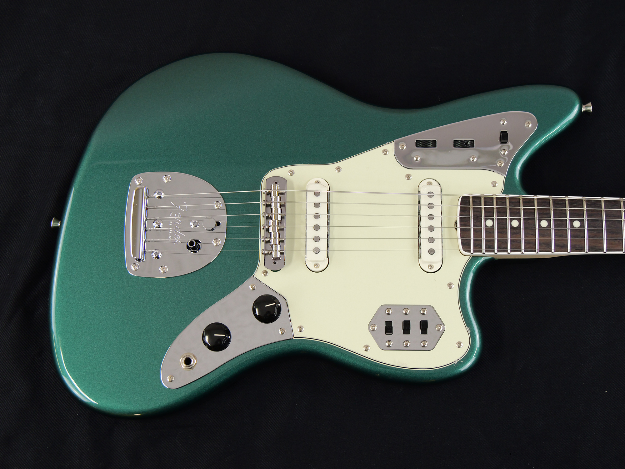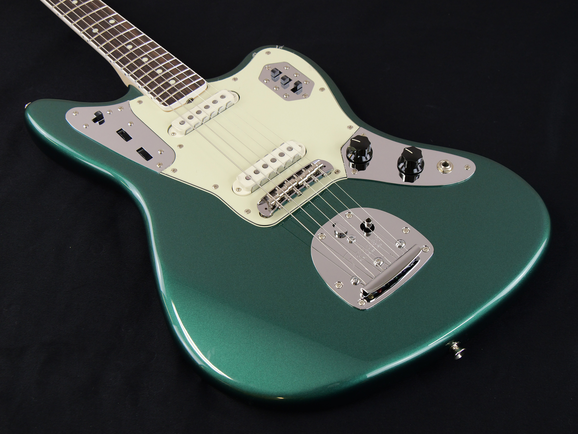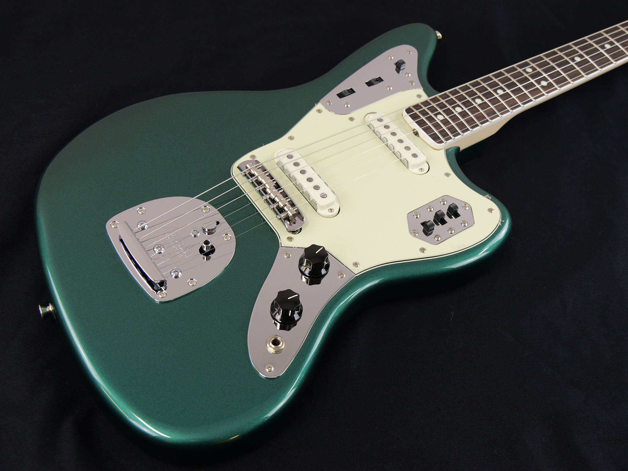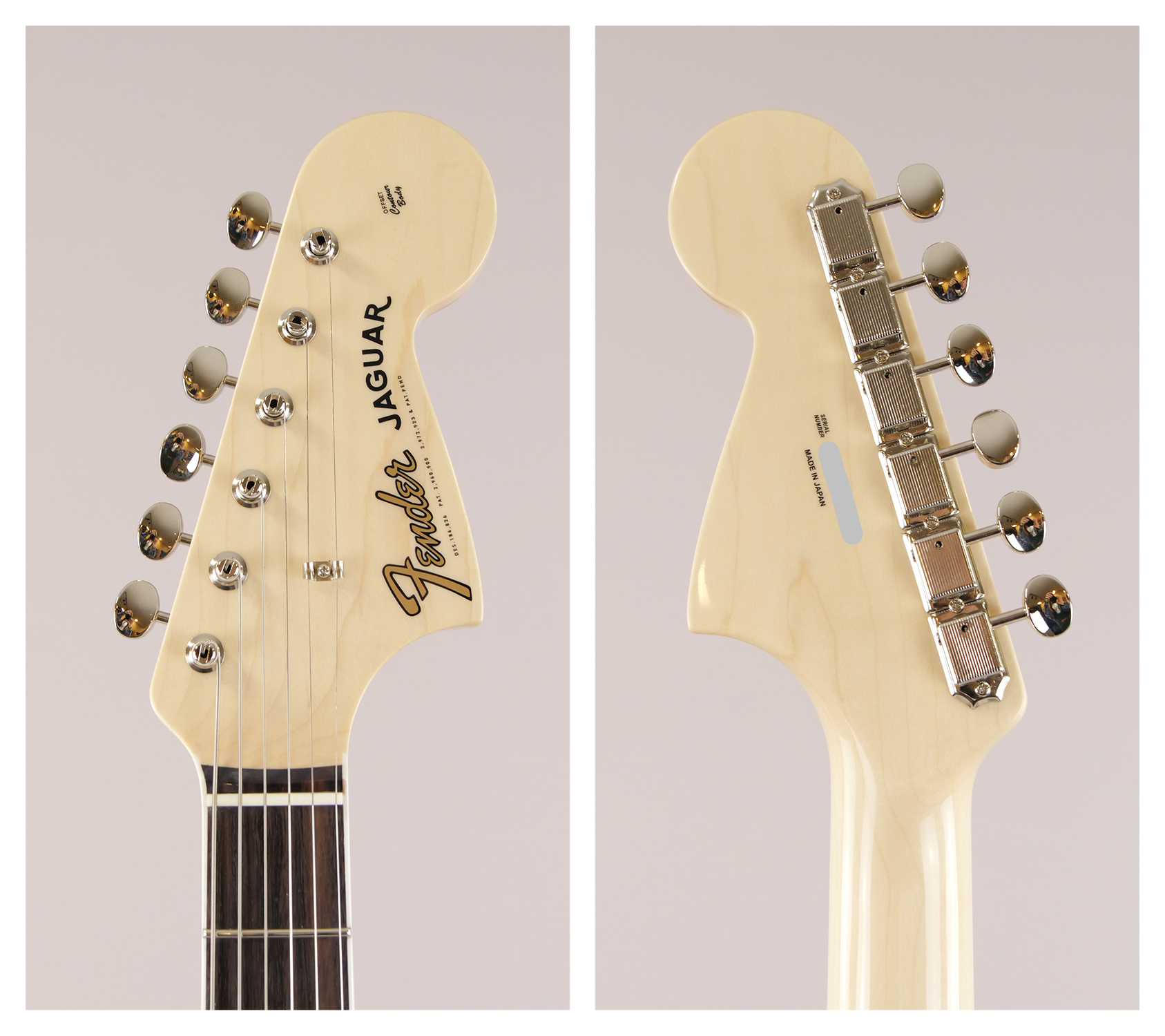 Made in Japan Traditional 60s Jaguar を基に、ボディ材をアルダーに、ピックアップをPure Vintage '65 Single-Coil Jaguarにアップグレード、ネックシェイプをMid '60s "C"、指板Rをヴィンテージ同様に7.25Radius、フレットをミディアム・ジャンボ・サイズ変更、ブリッジ・サドルを弦ズレの少ないムスタング・タイプに変更。