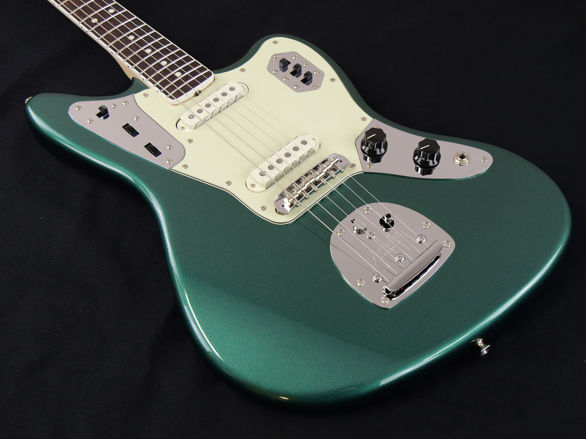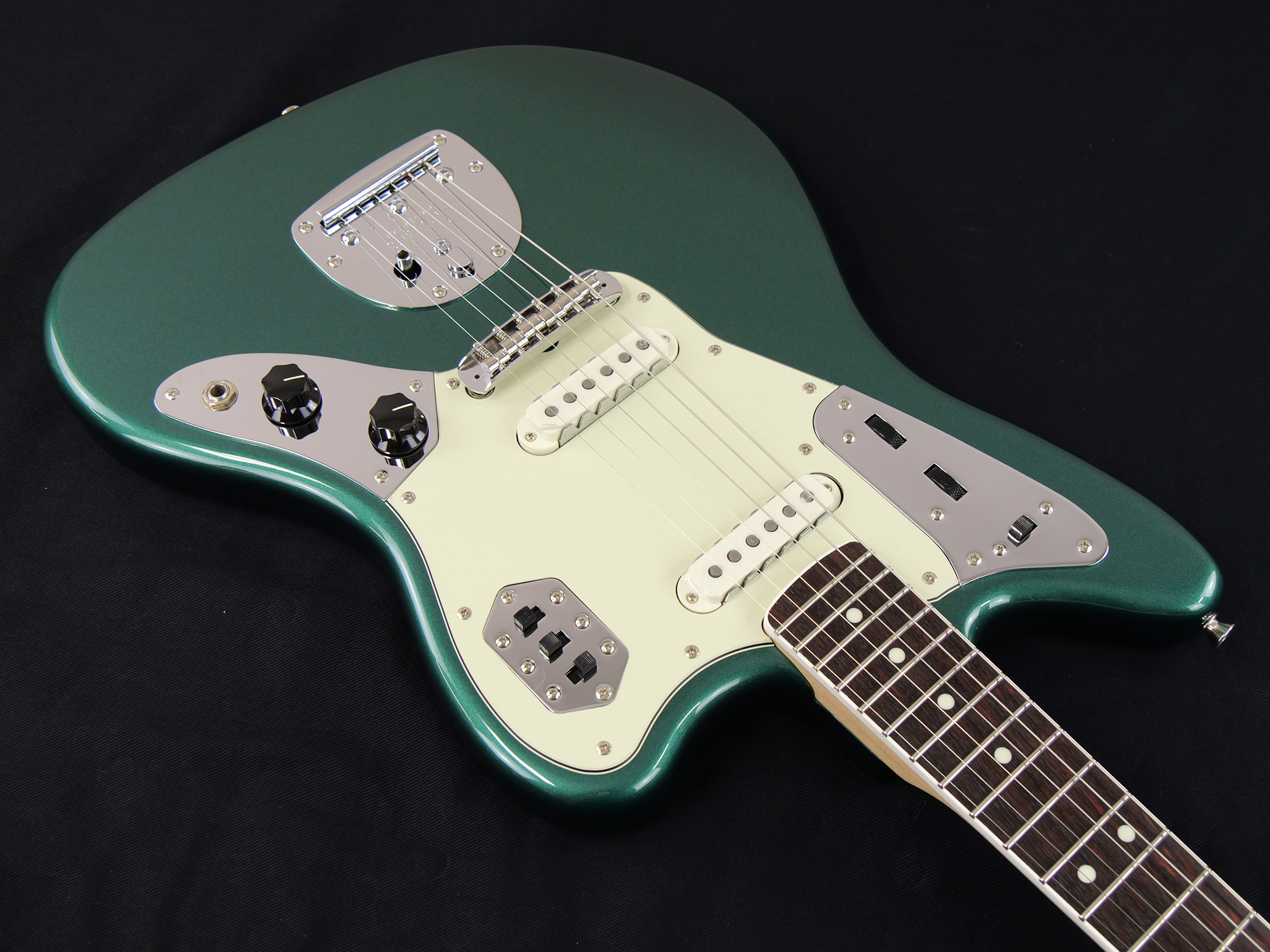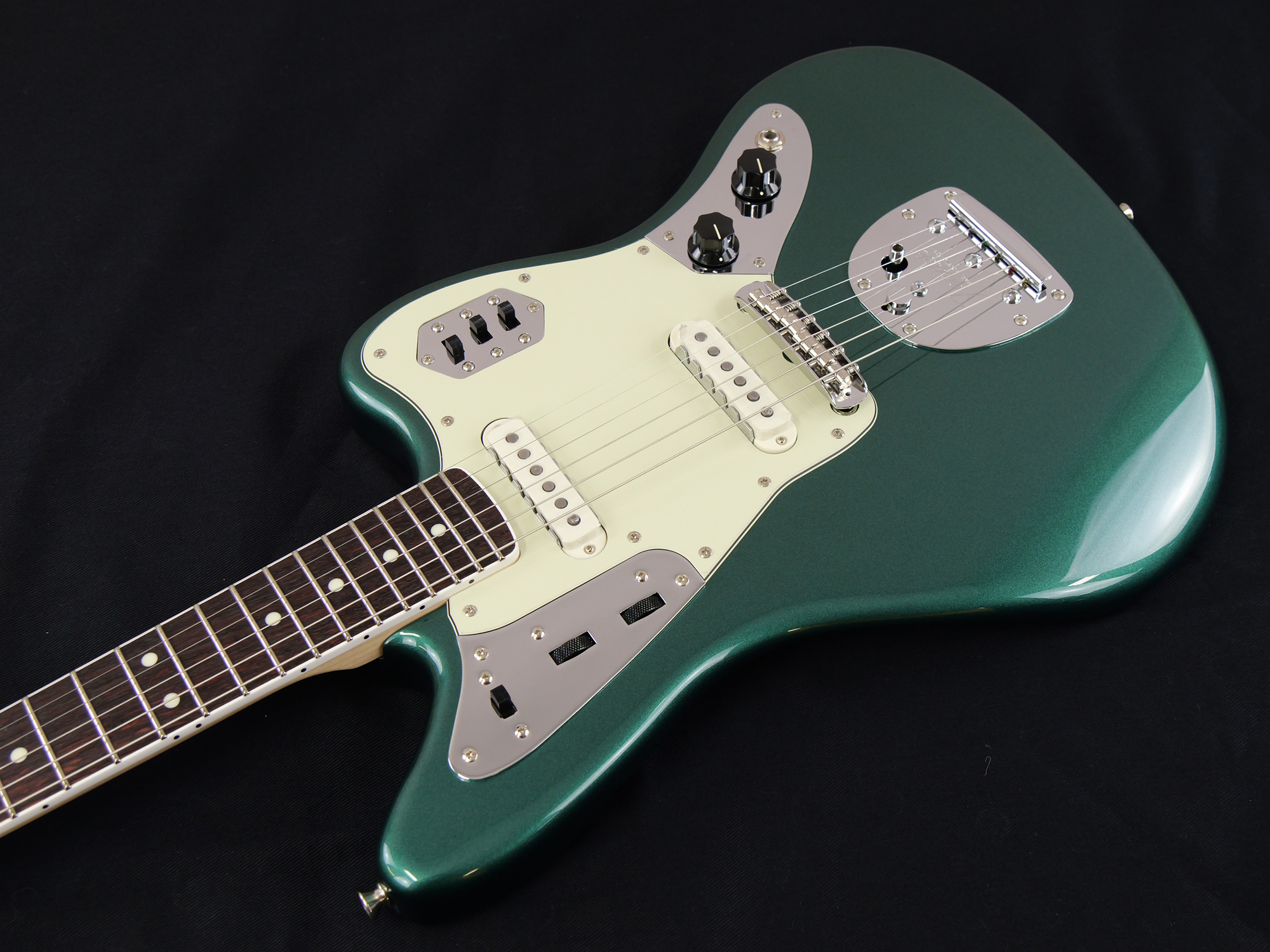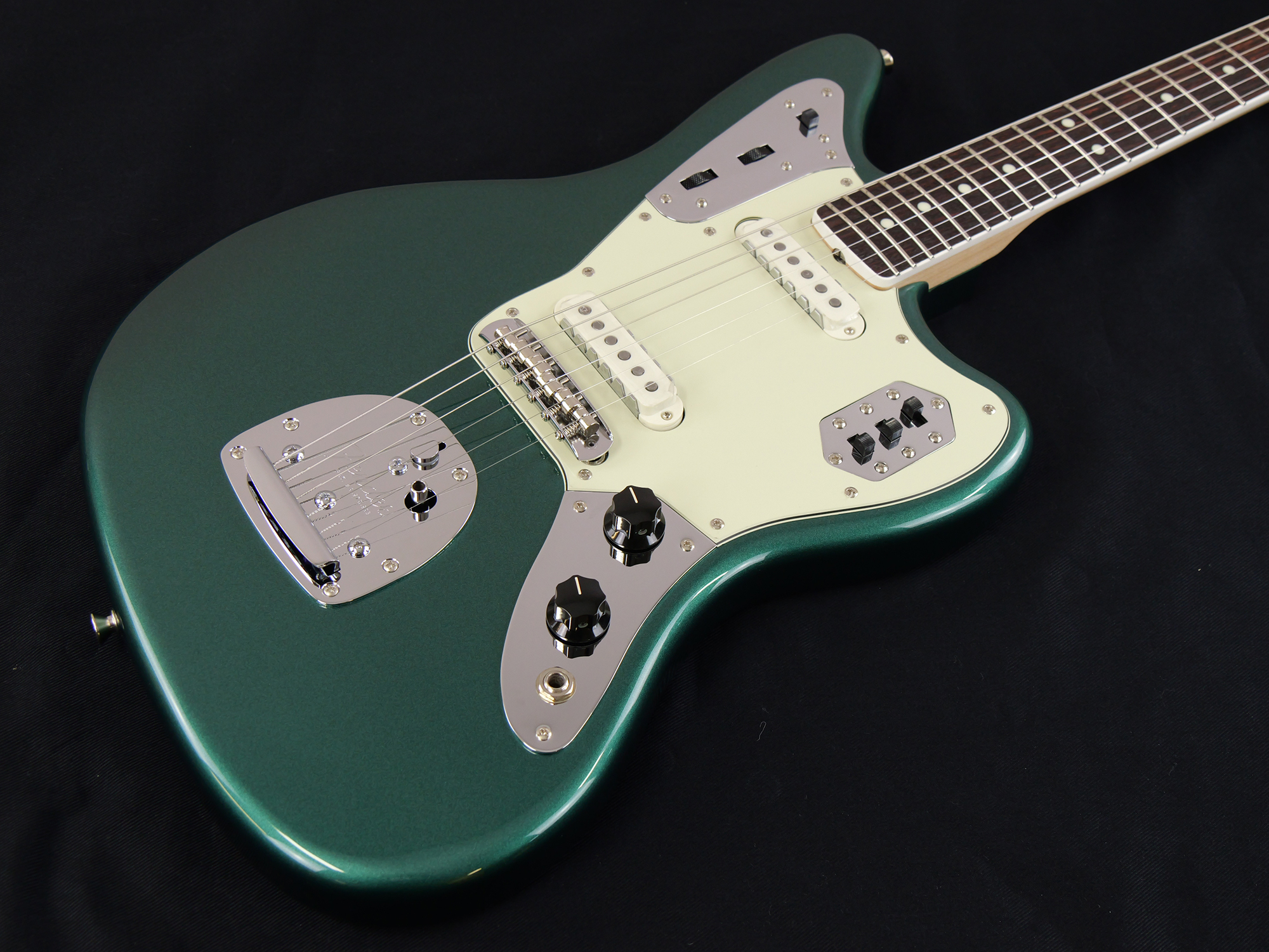 Made in Japan Traditional 60s Jaguar を基に、ボディ材をアルダーに、ピックアップをPure Vintage '65 Single-Coil Jaguarにアップグレード、ネックシェイプをMid '60s "C"、指板Rをヴィンテージ同様に7.25Radius、フレットをミディアム・ジャンボ・サイズ変更、ブリッジ・サドルを弦ズレの少ないムスタング・タイプに変更。