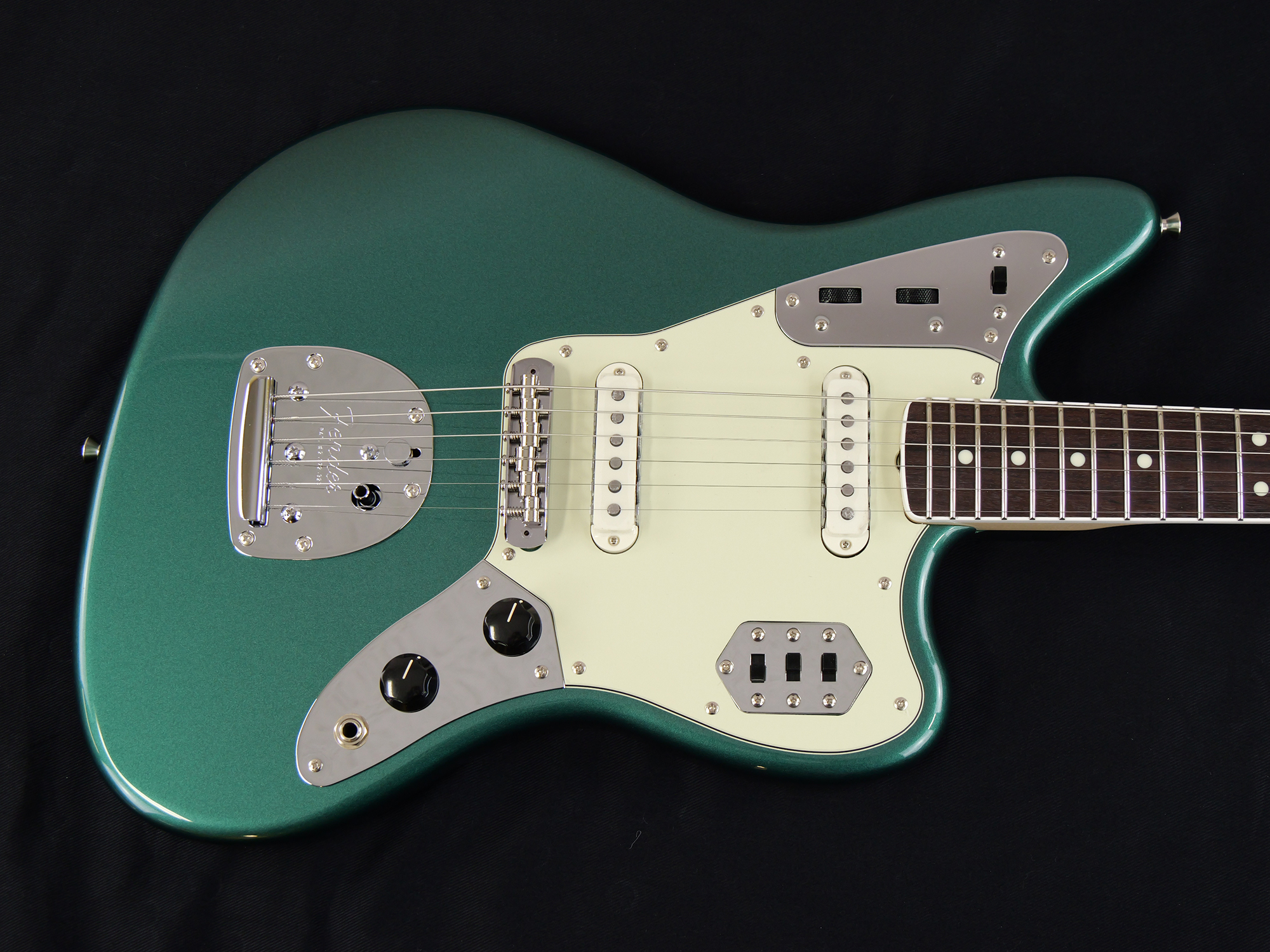 Made in Japan Traditional 60s Jaguar を基に、ボディ材をアルダーに、ピックアップをPure Vintage '65 Single-Coil Jaguarにアップグレード、ネックシェイプをMid '60s "C"、指板Rをヴィンテージ同様に7.25Radius、フレットをミディアム・ジャンボ・サイズ変更、ブリッジ・サドルを弦ズレの少ないムスタング・タイプに変更。