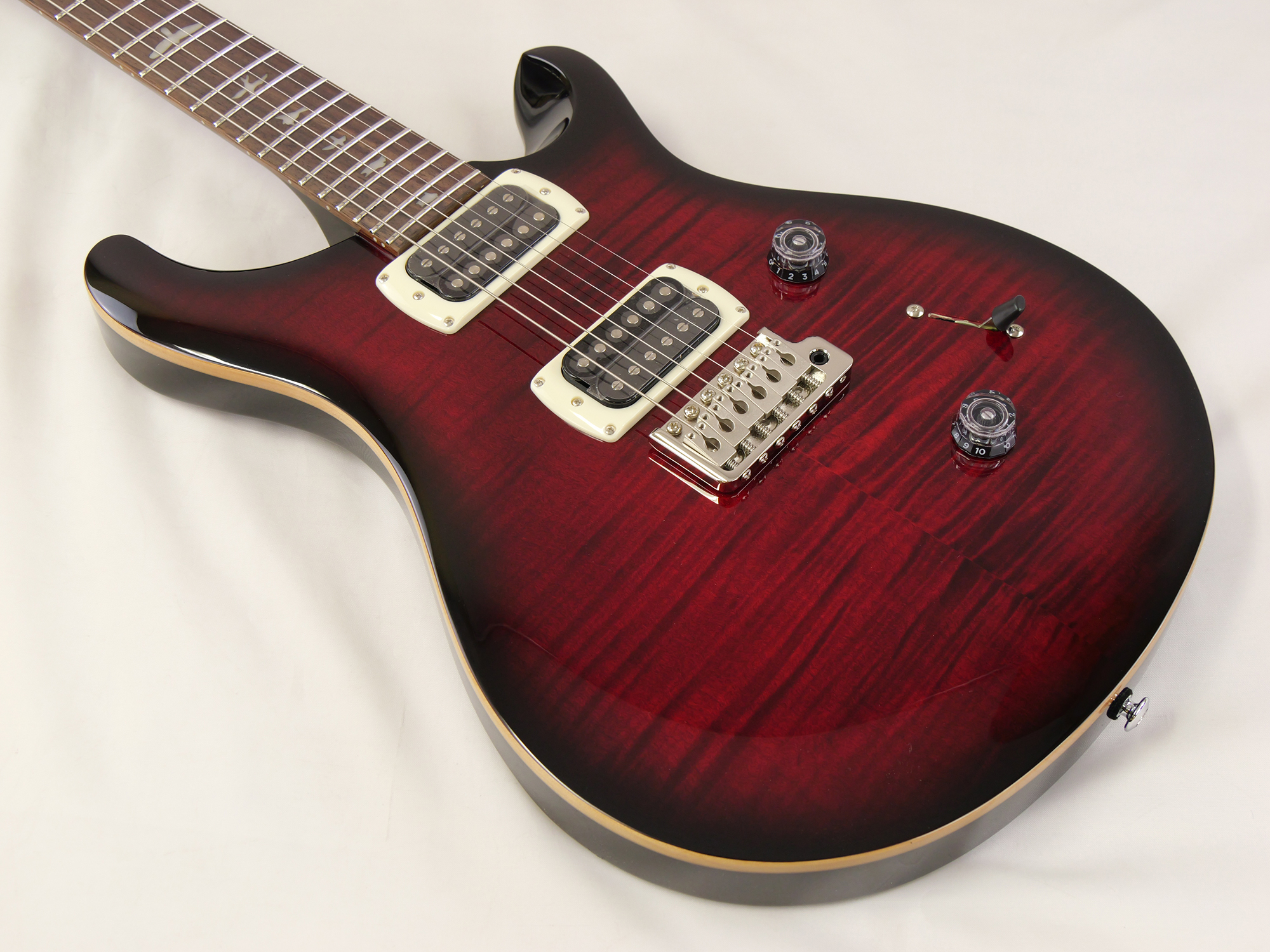 数多くのミュージシャンから愛用されているSE Custom 24は、マホガニー・バック、メイプル・トップのボディ、Wide Thinカーブのメイプル・ネック、ローズウッド指板、バード・インレイを合わせ、PRSデザインのトレモロ・ブリッジを装備。