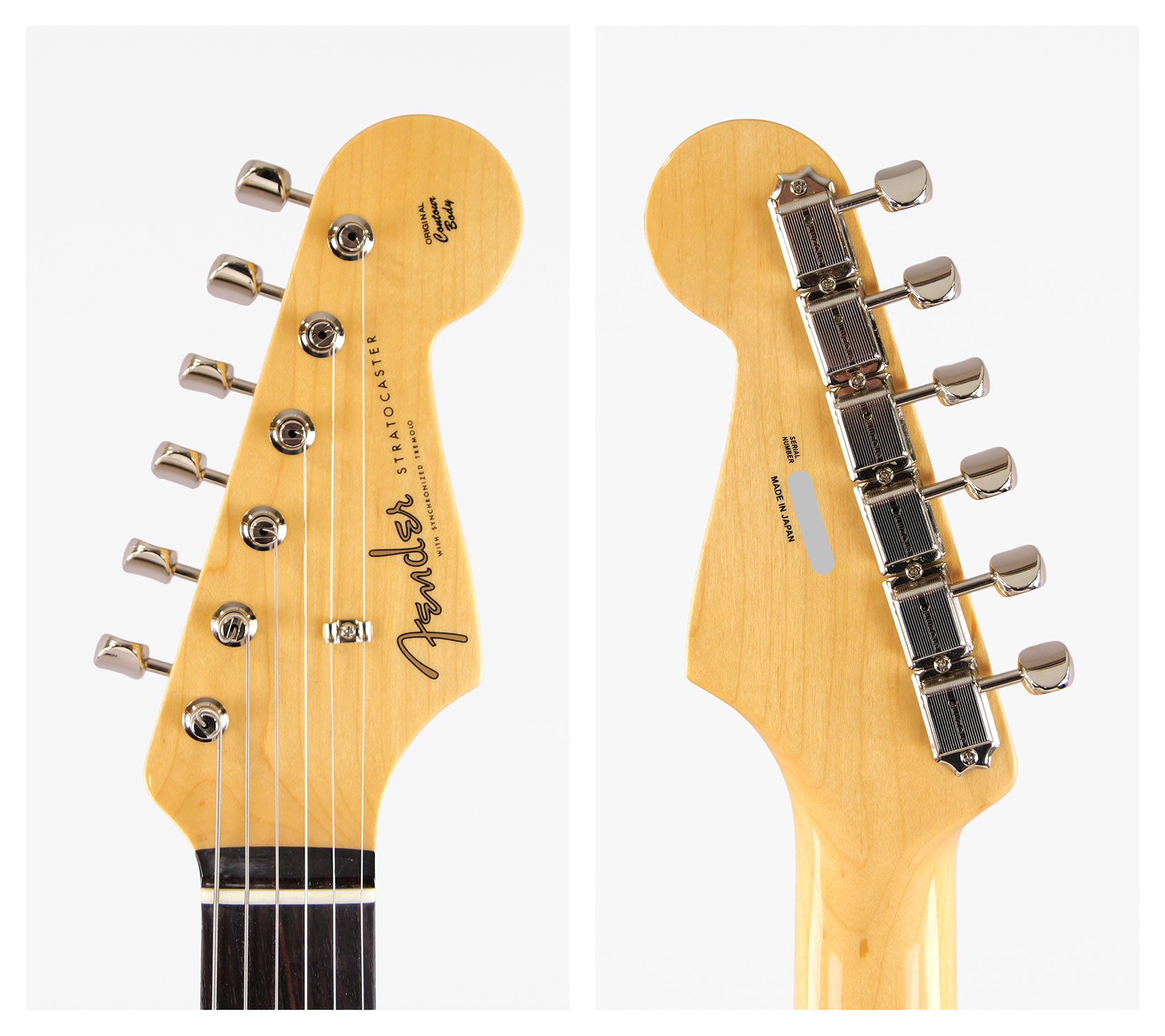 Made in Japan Heritage 60s Stratocaster®はアルダーボディにラッカーフィニッシュを施し、使用年月と共に色合いに深みが増します。