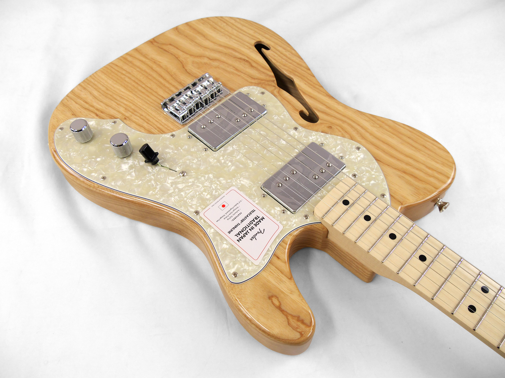 Made in Japan Traditional 70s Telecaster® Thinlineはグロスフィニッシュのアッシュボディを採用。21本のヴィンテージスタイルフレットを装備した9.5インチラジアスの”U”シェイプメイプルネックがTraditionalシリ ーズならではのクラシカルな演奏製を提供します。6サドル式String-Through-Bodyハードテイルブリッジ、そしてTraditionalシリーズのために選定されたオリジナルピックアップはリアルで音楽的なヴィンテージトーンを奏でます。細めに設計されたナット幅は日本のプレイヤーにも弾きやすい仕様となっています。堅実なギタークラフトマンシップと、プレイヤーのニーズに柔軟に対応する答えが、本シリーズに反映されています。