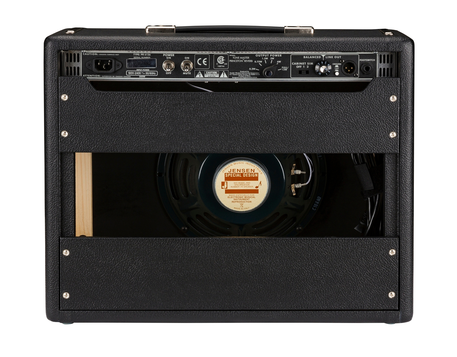 Tone Master Princeton Reverbは、自宅での練習や、スタジオレコーディング、ライブパフォーマンスといった幅広いシチュエーションで、Tone Masterアンプシリーズならではのリアリズムに溢れるヴィンテージトーンとルックスを提供する、汎用性の高いモデルです。クラシックなフェンダートーンにリバーブとトレモロエフェクトを内蔵し、適度なパワーを持つアンプを求めるギタリストに最適なサイズとなっています。リアパネルには、フルパワーと5段階のアッテネート設定が可能な出力パワーセレクター、Shure SM57およびRoyer R-121マイクでキャプチャしたインパルスレスポンス(IR)キャビネットシミュレーションを備えたバランスXLRライン出力、ステージやレコーディングでスピーカー出力をミュートするミュートスイッチ、ファームウェアアップグレード用のUSBポートなど、現代の利便性と柔軟性をもたらす機能が装備されています。