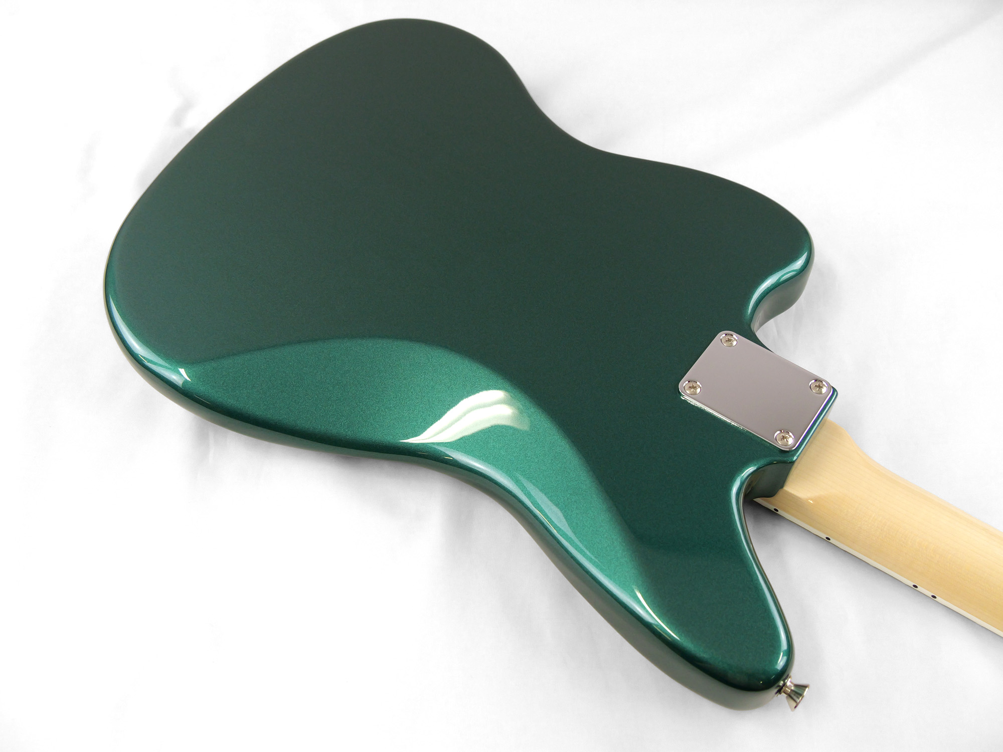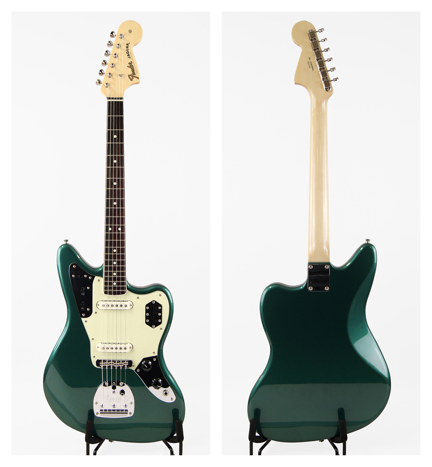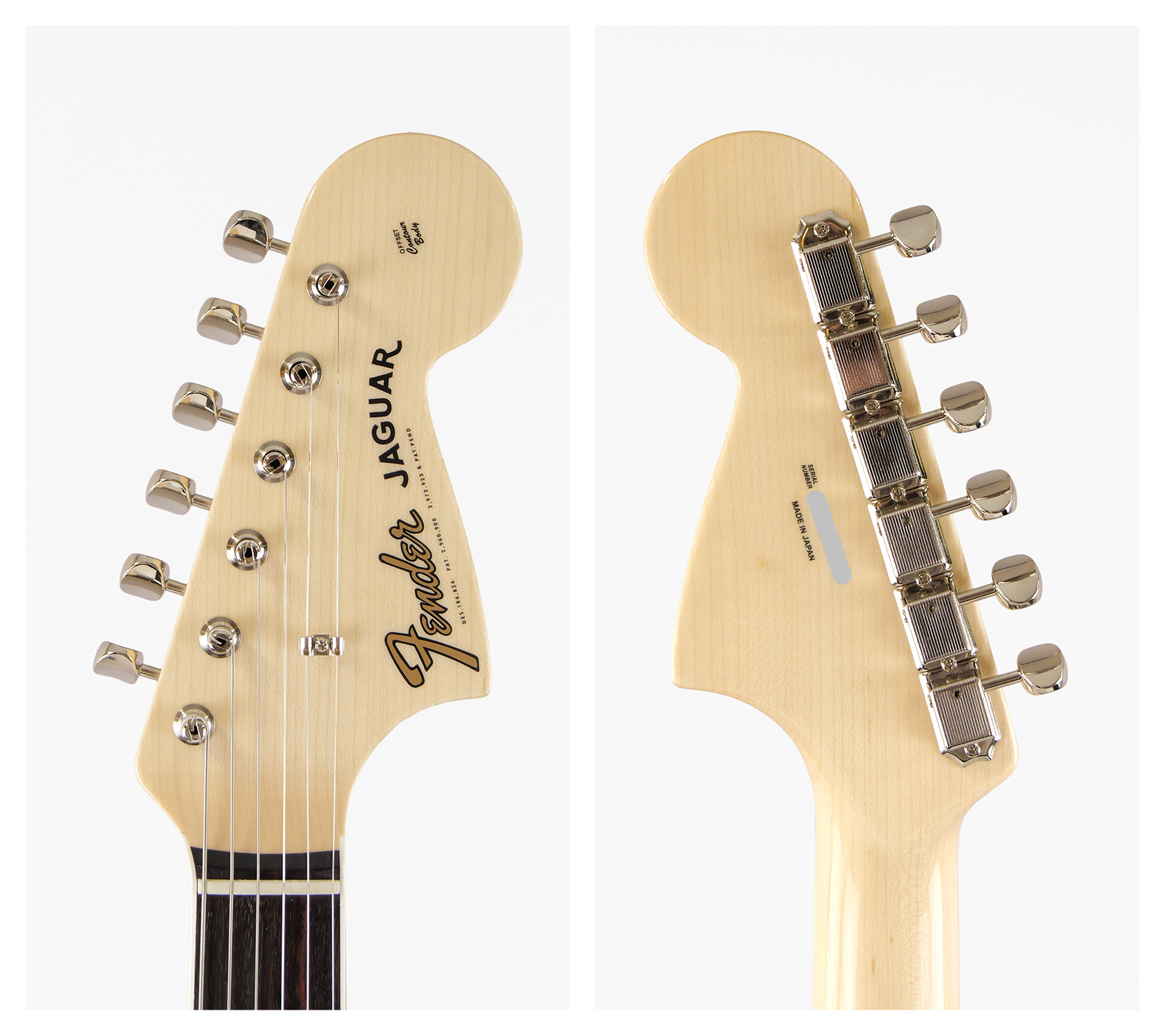 Made in Japan Traditional 60s Jaguar を基に、ボディ材をアルダーに、ピックアップをPure Vintage '65 Single-Coil Jaguarにアップグレード、ネックシェイプをMid '60s "C"、指板Rをヴィンテージ同様に7.25Radius、フレットをミディアム・ジャンボ・サイズ変更、ブリッジ・サドルを弦ズレの少ないムスタング・タイプに変更。