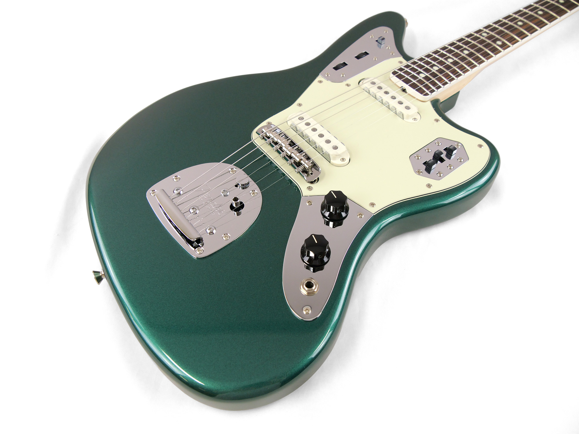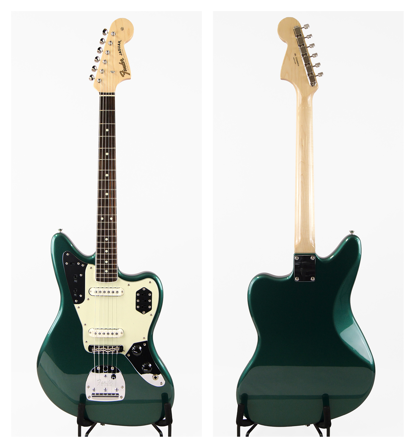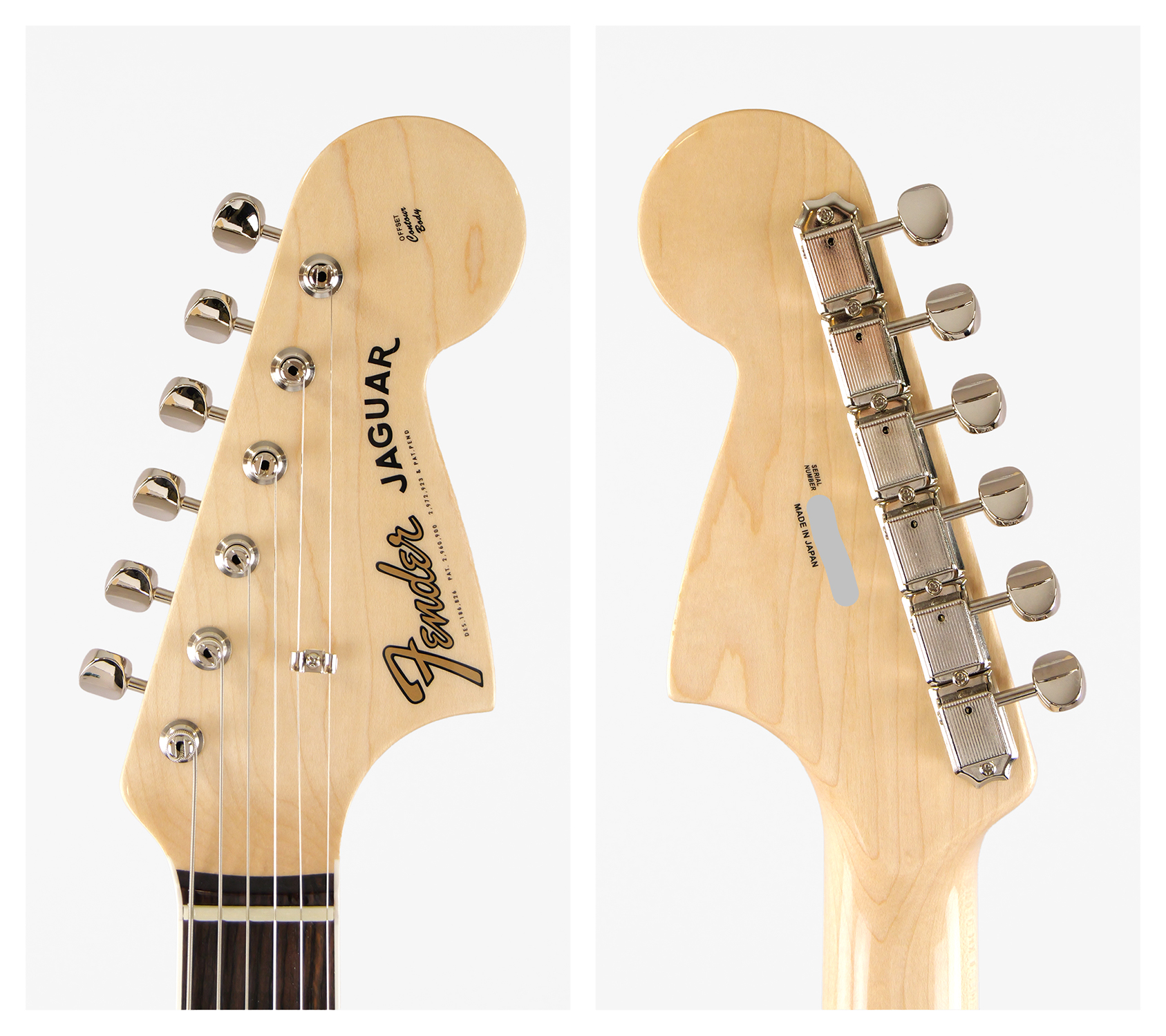 Made in Japan Traditional 60s Jaguar を基に、ボディ材をアルダーに、ピックアップをPure Vintage '65 Single-Coil Jaguarにアップグレード、ネックシェイプをMid '60s "C"、指板Rをヴィンテージ同様に7.25Radius、フレットをミディアム・ジャンボ・サイズ変更、ブリッジ・サドルを弦ズレの少ないムスタング・タイプに変更。