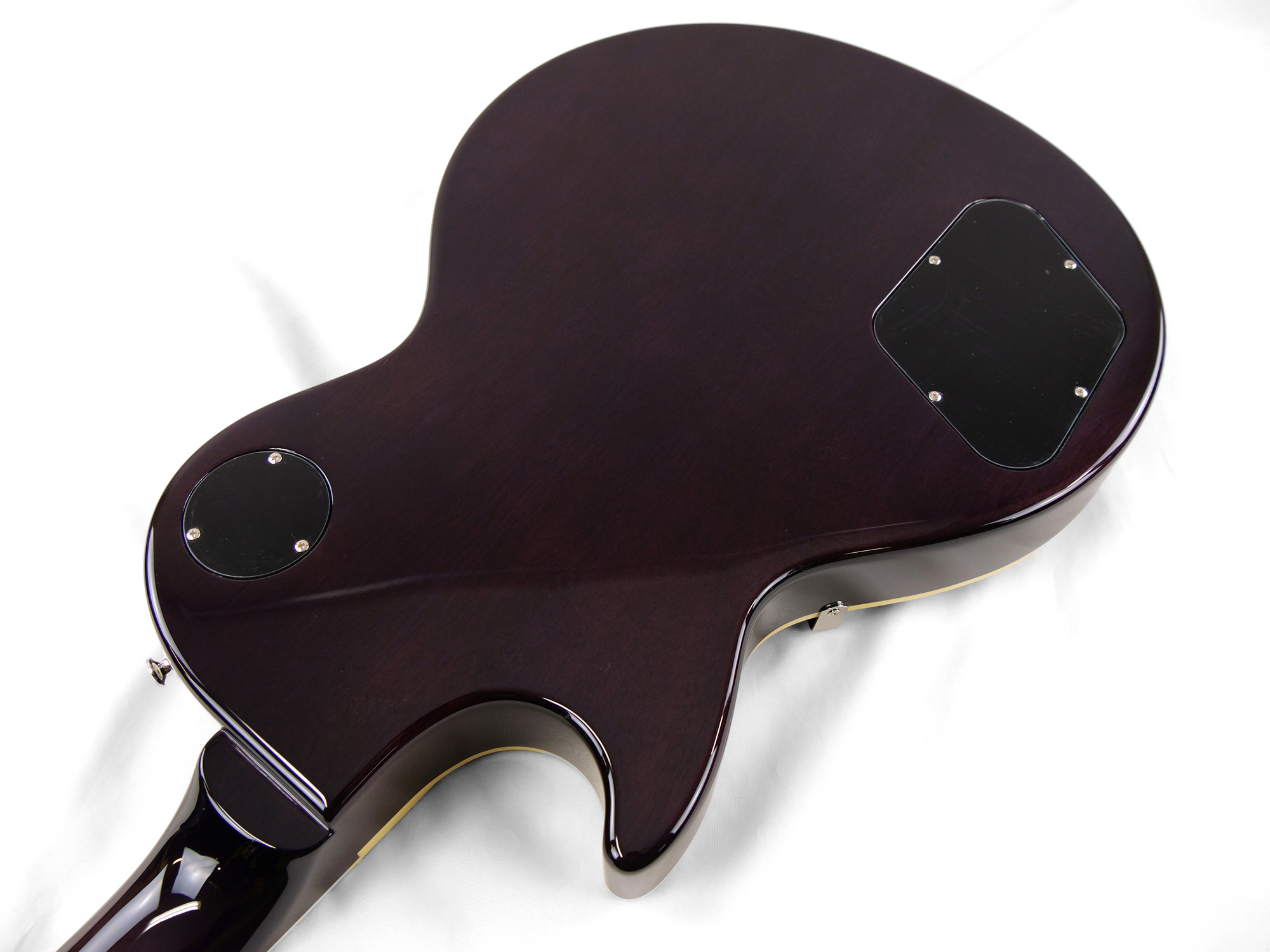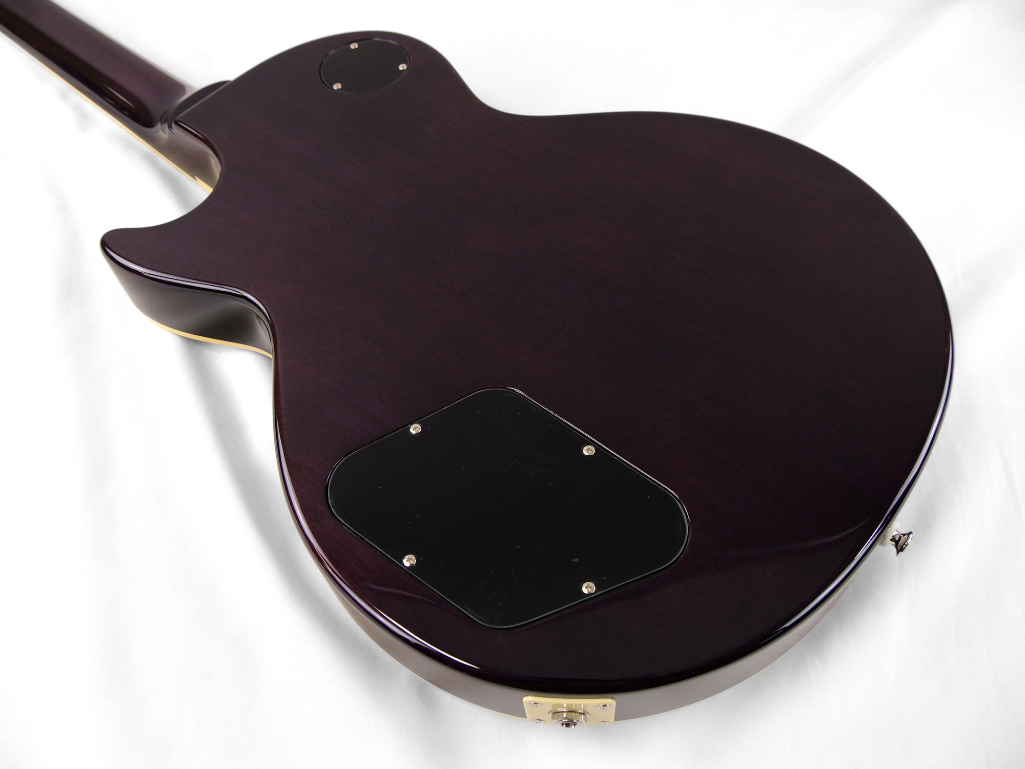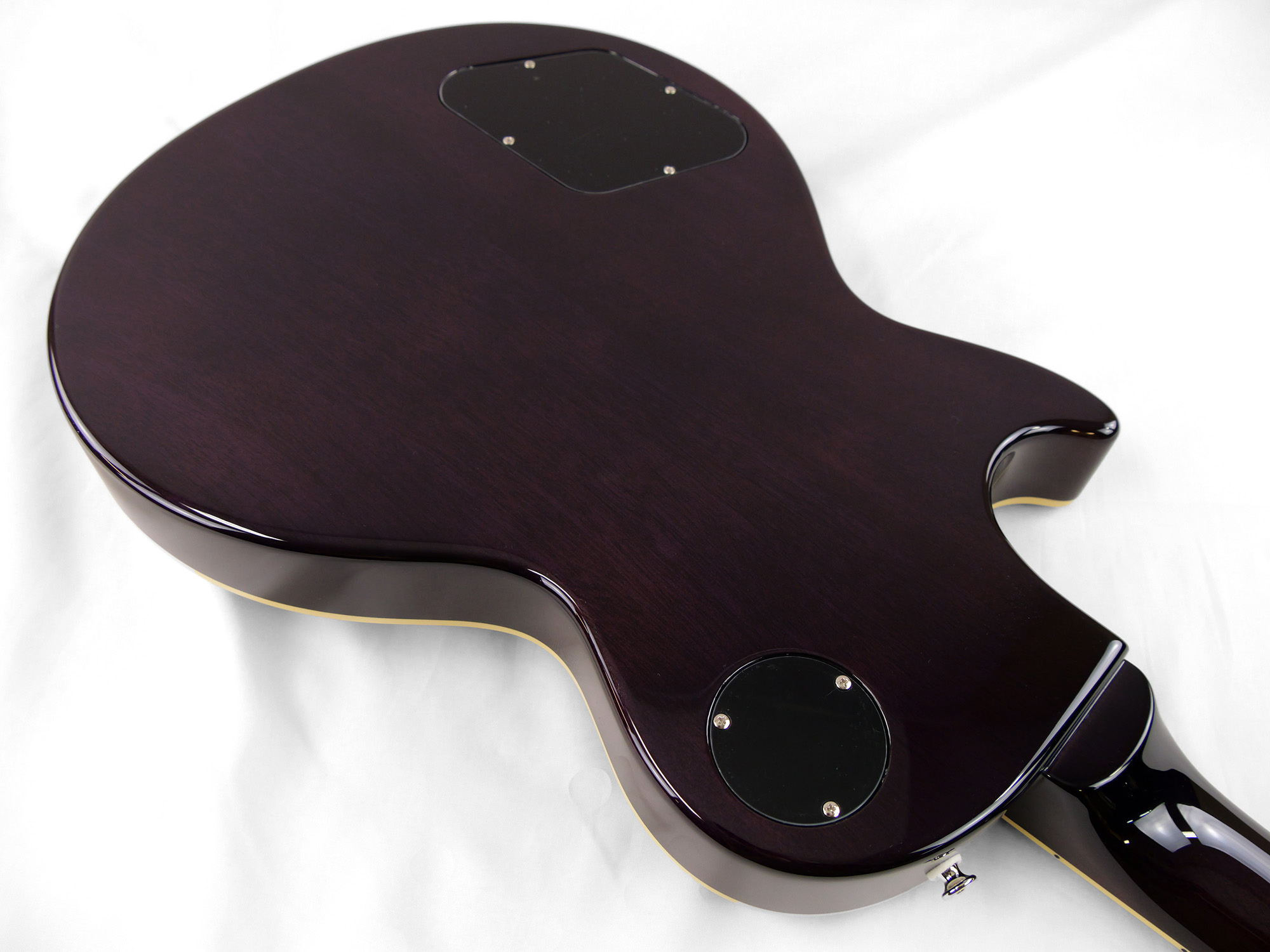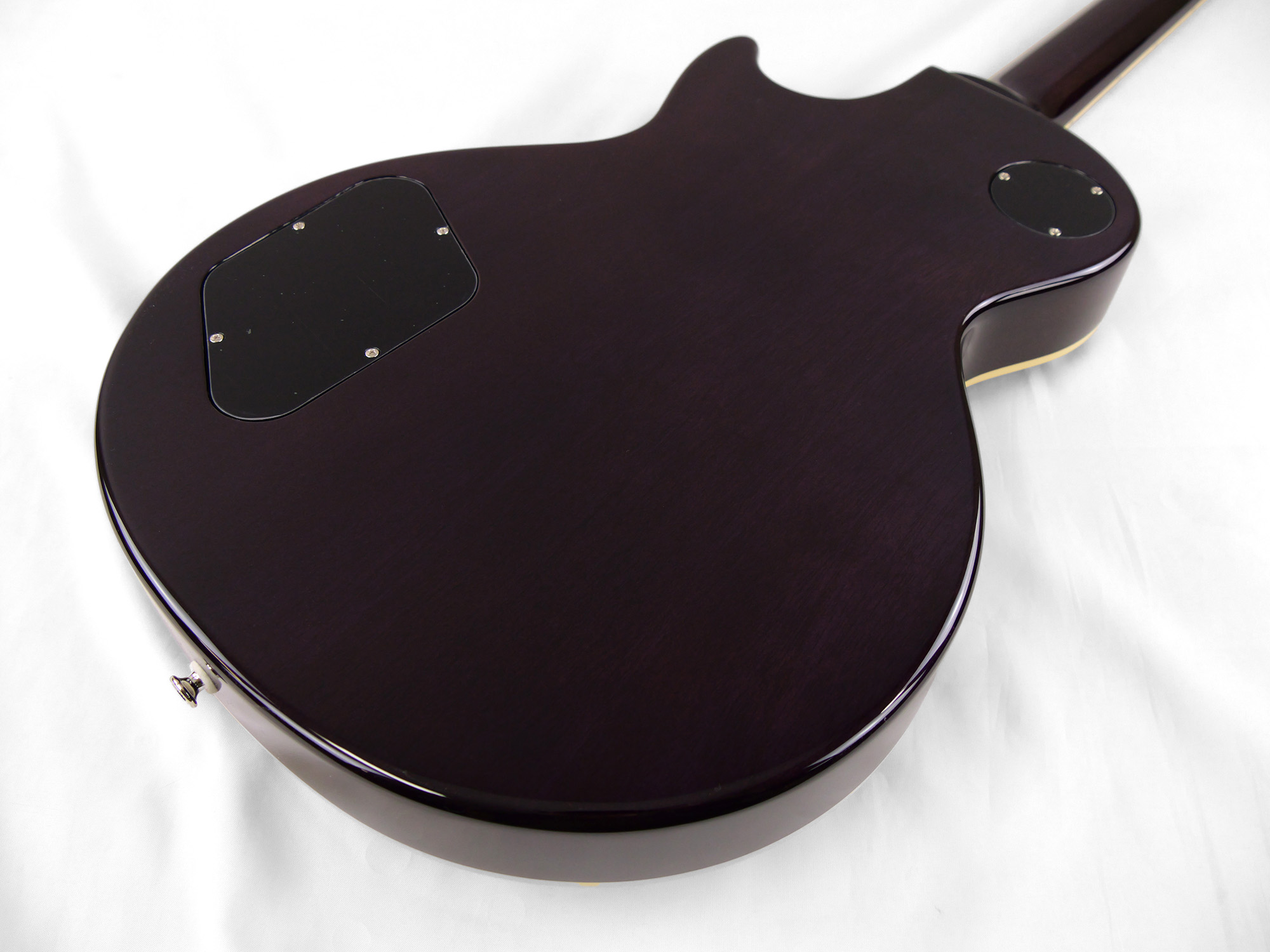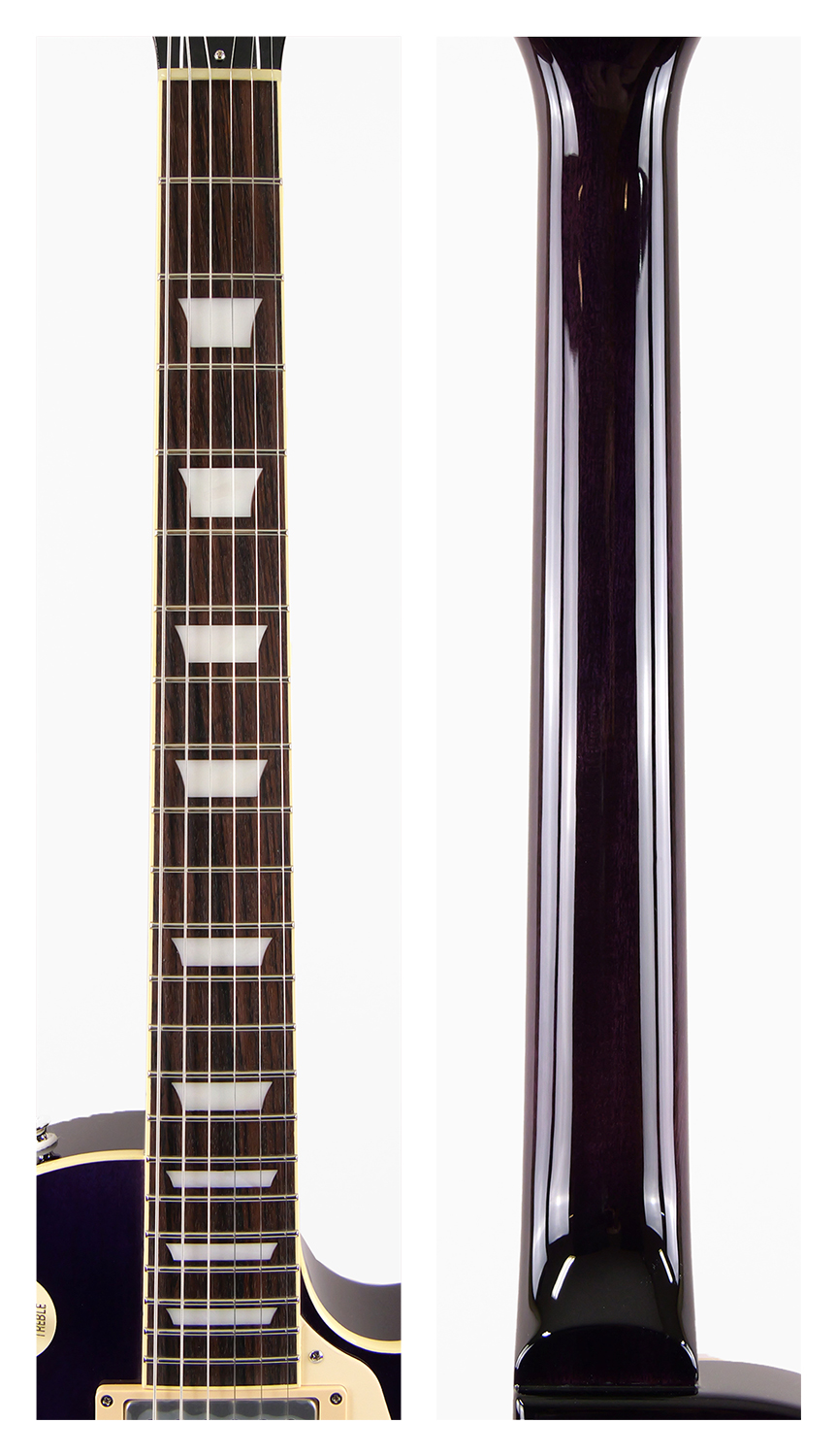 メイプルをトップにラミネートした王道のレスポール・スタンダード・スタイル。ネックとボディの接合には伝統的なニカワ接着が採用されており、セットネックならではの響きの一体感がしっかりと感じられます。