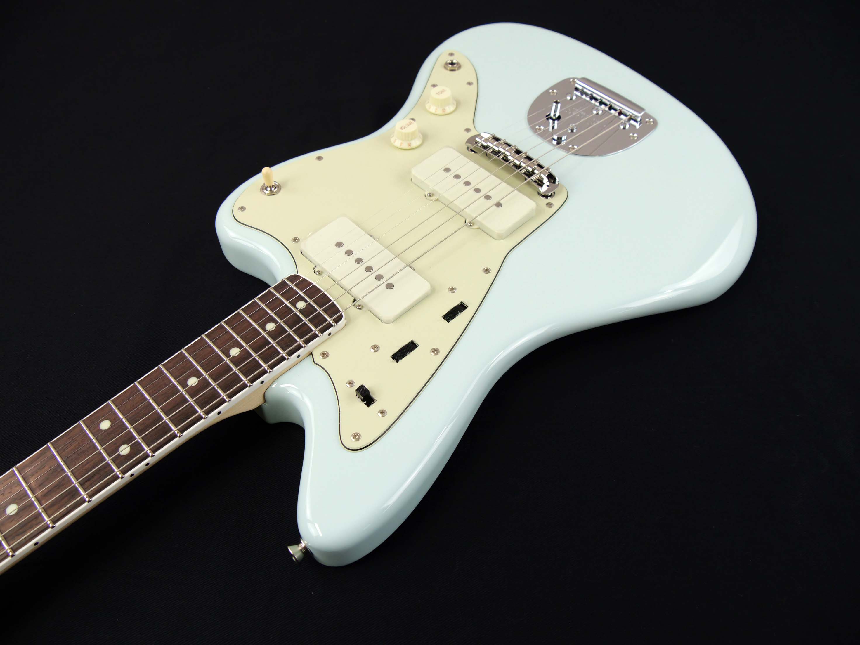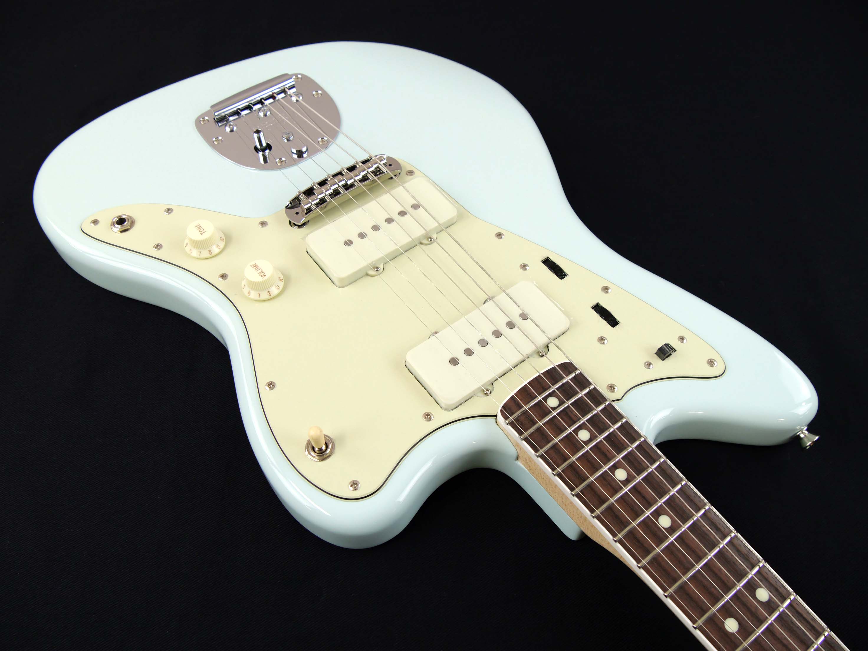 Made in Japan Traditional 60s Jazzmaster を基に、ボディ材をアルダーにアップ・グレード、指板Rをヴィンテージ同様 7.25Radius、フレットをミディアム・ジャンボ・サイズ変更、ブリッジ・サドルを弦ズレの少ないムスタング・タイプに変更。