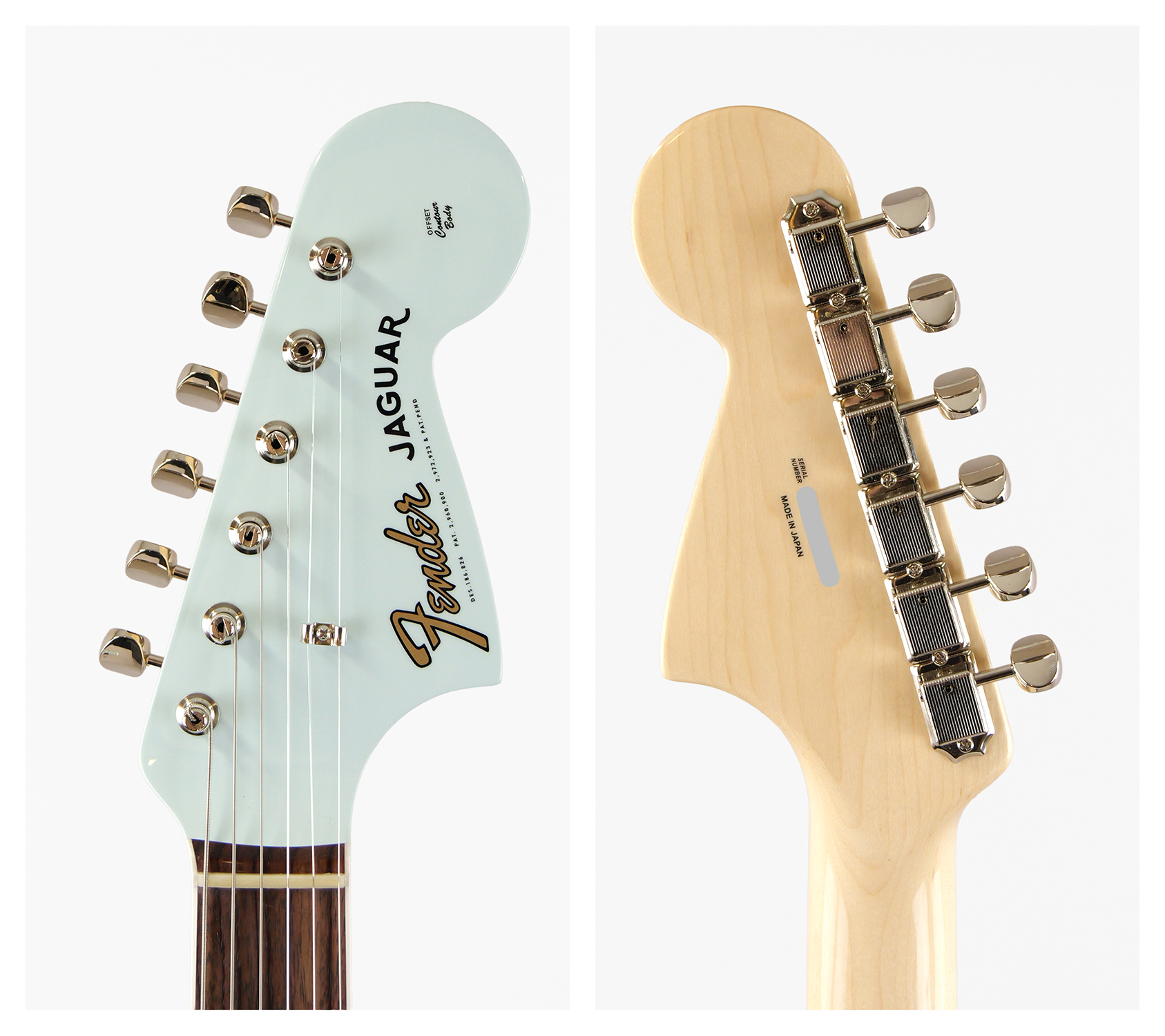 Made in Japan Traditional 60s Jaguar を基に、ボディ材をアルダーにアップ・グレード、指板Rをヴィンテージ同様 7.25Radius、フレットをミディアム・ジャンボ・サイズ変更、ブリッジ・サドルを弦ズレの少ないムスタング・タイプに変更。
