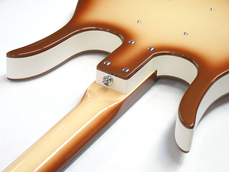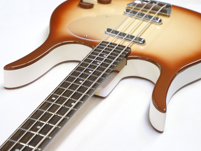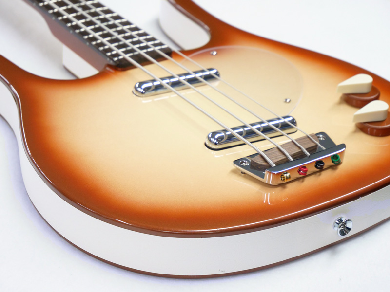 ルックスだけでなく、開放時と押弦時のサウンドの均一性を実現させるメタルナットとメゾナイト製ホロウボディとリップスティックピックアップによる個性的な鳴りとサウンドです。